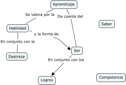 Este Cmap, tiene información relacionada con: Aprendizaje, Aprendizaje Da cuenta del Ser, Ser En conjunto con los Logros, Aprendizaje Se valora por la Habilidad, Habilidad y la forma de Ser, Habilidad En conjunto con la Destreza