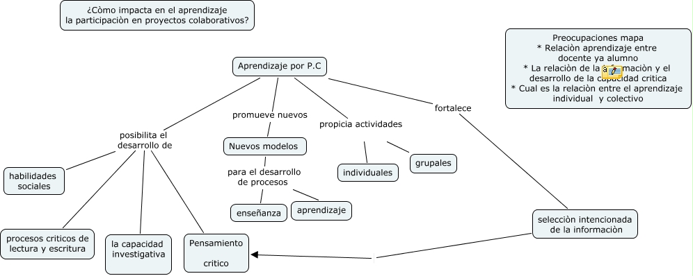 Este Cmap, tiene información relacionada con: Impacto en el aprendizaje de los mapas conceptuales, Aprendizaje por P.C posibilita el desarrollo de Pensamiento critico, Aprendizaje por P.C posibilita el desarrollo de habilidades sociales, Aprendizaje por P.C fortalece selecciòn intencionada de la informaciòn, Aprendizaje por P.C promueve nuevos Nuevos modelos, Aprendizaje por P.C propicia actividades grupales, selecciòn intencionada de la informaciòn Pensamiento critico, Nuevos modelos para el desarrollo de procesos enseñanza, Nuevos modelos para el desarrollo de procesos aprendizaje, Aprendizaje por P.C posibilita el desarrollo de la capacidad investigativa, Aprendizaje por P.C posibilita el desarrollo de procesos criticos de lectura y escritura, Aprendizaje por P.C propicia actividades individuales