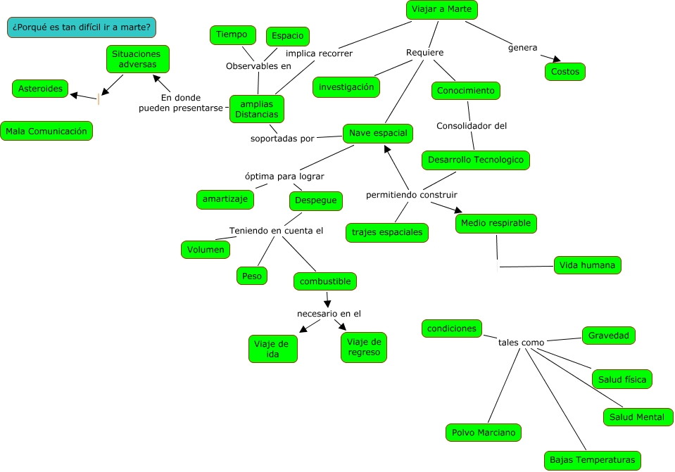 Este Cmap, tiene información relacionada con: Viajar a marte-mejorado, Viajar a Marte Requiere Nave espacial, condiciones tales como Bajas Temperaturas, Situaciones adversas Asteroides, Desarrollo Tecnologico permitiendo construir Medio respirable, combustible Teniendo en cuenta el Despegue, Nave espacial óptima para lograr Despegue, Conocimiento Consolidador del Desarrollo Tecnologico, Viajar a Marte implica recorrer amplias Distancias, Desarrollo Tecnologico permitiendo construir trajes espaciales, combustible Teniendo en cuenta el Volumen, combustible Teniendo en cuenta el Peso, amplias Distancias Observables en Espacio, combustible necesario en el Viaje de regreso, condiciones tales como Salud Mental, Vida humana Medio respirable, Viajar a Marte Requiere Conocimiento, Nave espacial soportadas por amplias Distancias, Nave espacial óptima para lograr amartizaje, Viajar a Marte Requiere investigación, condiciones tales como Salud física