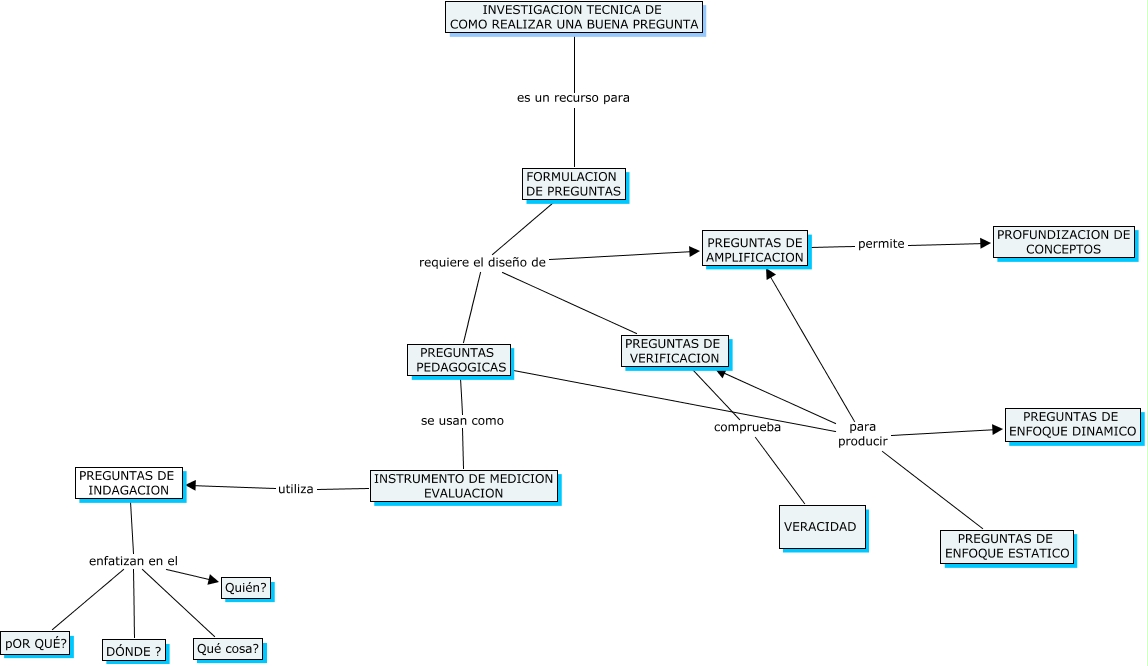 Este Cmap, tiene información relacionada con: ITINERARIO JOTA, FORMULACION DE PREGUNTAS requiere el diseño de PREGUNTAS PEDAGOGICAS, INVESTIGACION TECNICA DE COMO REALIZAR UNA BUENA PREGUNTA es un recurso para FORMULACION DE PREGUNTAS, FORMULACION DE PREGUNTAS requiere el diseño de PREGUNTAS DE VERIFICACION, PREGUNTAS DE INDAGACION enfatizan en el DÓNDE ?, PREGUNTAS PEDAGOGICAS para producir PREGUNTAS DE ENFOQUE DINAMICO, PREGUNTAS DE INDAGACION enfatizan en el Qué cosa?, FORMULACION DE PREGUNTAS requiere el diseño de PREGUNTAS DE AMPLIFICACION, PREGUNTAS DE INDAGACION enfatizan en el pOR QUÉ?, PREGUNTAS PEDAGOGICAS se usan como INSTRUMENTO DE MEDICION EVALUACION, PREGUNTAS DE INDAGACION enfatizan en el Quién?, PREGUNTAS PEDAGOGICAS para producir PREGUNTAS DE VERIFICACION, PREGUNTAS PEDAGOGICAS para producir PREGUNTAS DE ENFOQUE ESTATICO, INSTRUMENTO DE MEDICION EVALUACION utiliza PREGUNTAS DE INDAGACION, PREGUNTAS PEDAGOGICAS para producir PREGUNTAS DE AMPLIFICACION, PREGUNTAS DE AMPLIFICACION permite PROFUNDIZACION DE CONCEPTOS, PREGUNTAS DE VERIFICACION comprueba VERACIDAD