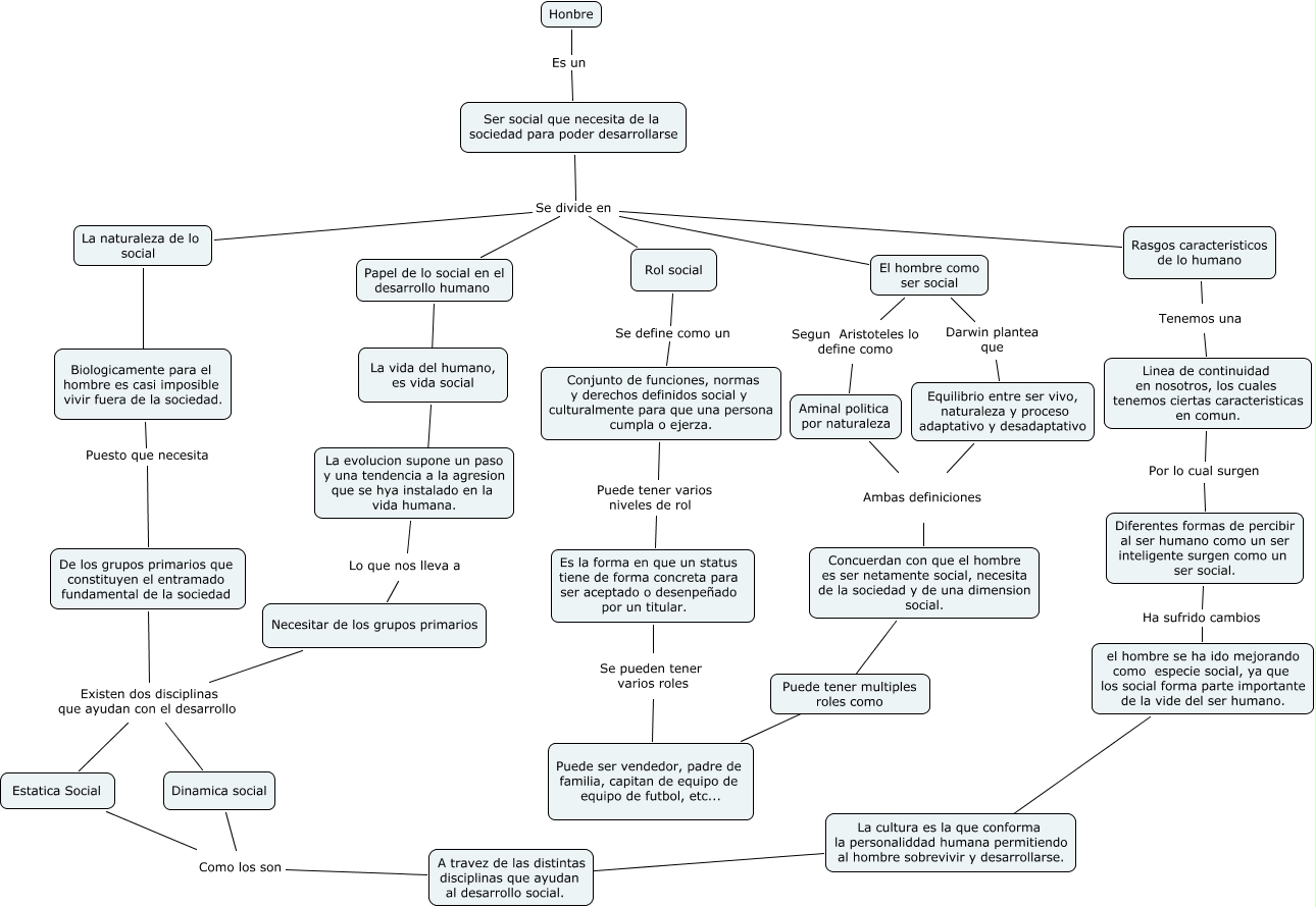 Este Cmap, tiene información relacionada con: paz castro terminado, De los grupos primarios que constituyen el entramado fundamental de la sociedad Existen dos disciplinas que ayudan con el desarrollo Estatica Social, Ser social que necesita de la sociedad para poder desarrollarse Se divide en El hombre como ser social, A travez de las distintas disciplinas que ayudan al desarrollo social. Como los son Dinamica social, La naturaleza de lo social Se divide en El hombre como ser social, La naturaleza de lo social Se divide en Rol social, Rasgos caracteristicos de lo humano Se divide en Papel de lo social en el desarrollo humano, Necesitar de los grupos primarios Existen dos disciplinas que ayudan con el desarrollo Dinamica social, Honbre Es un Ser social que necesita de la sociedad para poder desarrollarse, Es la forma en que un status tiene de forma concreta para ser aceptado o desenpeñado por un titular. Se pueden tener varios roles Puede ser vendedor, padre de familia, capitan de equipo de equipo de futbol, etc..., El hombre como ser social Darwin plantea que Equilibrio entre ser vivo, naturaleza y proceso adaptativo y desadaptativo, Concuerdan con que el hombre es ser netamente social, necesita de la sociedad y de una dimension social. ???? Puede tener multiples roles como, Ser social que necesita de la sociedad para poder desarrollarse Se divide en Rol social, Necesitar de los grupos primarios Existen dos disciplinas que ayudan con el desarrollo Estatica Social, La vida del humano, es vida social ???? La evolucion supone un paso y una tendencia a la agresion que se hya instalado en la vida humana., Equilibrio entre ser vivo, naturaleza y proceso adaptativo y desadaptativo Ambas definiciones Concuerdan con que el hombre es ser netamente social, necesita de la sociedad y de una dimension social., A travez de las distintas disciplinas que ayudan al desarrollo social. Como los son Estatica Social, Rasgos caracteristicos de lo humano Se divide en Rol social, La cultura es la que conforma la personaliddad humana permitiendo al hombre sobrevivir y desarrollarse. ???? A travez de las distintas disciplinas que ayudan al desarrollo social., el hombre se ha ido mejorando como especie social, ya que los social forma parte importante de la vide del ser humano. ???? La cultura es la que conforma la personaliddad humana permitiendo al hombre sobrevivir y desarrollarse., Ser social que necesita de la sociedad para poder desarrollarse Se divide en Papel de lo social en el desarrollo humano