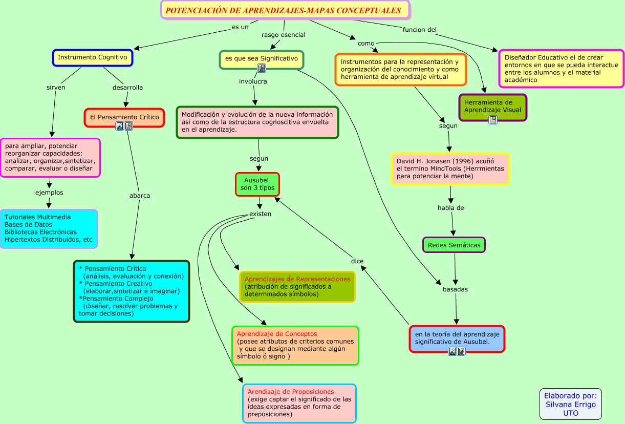Este Cmap, tiene información relacionada con: La Potenciación de Aprendizajes -Mapas Conceptuales, David H. Jonasen (1996) acuñó el termino MindTools (Herrmientas para potenciar la mente) habla de Redes Semáticas, Ausubel son 3 tipos existen Aprendizaje de Conceptos (posee atributos de criterios comunes y que se designan mediante algún símbolo ó signo ), Ausubel son 3 tipos existen Arendizaje de Proposiciones (exige captar el significado de las ideas expresadas en forma de preposiciones), El Pensamiento Crítico abarca * Pensamiento Crítico (análisis, evaluación y conexión) * Pensamiento Creativo (elaborar,sintetizar e imaginar) *Pensamiento Complejo (diseñar, resolver problemas y tomar decisiones), POTENCIACIÓN DE APRENDIZAJES-MAPAS CONCEPTUALES como Herramienta de Aprendizaje Visual, es que sea Significativo involucra Modificación y evolución de la nueva información asi como de la estructura cognoscitiva envuelta en el aprendizaje., para ampliar, potenciar reorganizar capacidades: analizar, organizar,sintetizar, comparar, evaluar o diseñar ejemplos Tutoriales Multimedia Bases de Datos Bibliotecas Electrónicas Hipertextos Distribuidos, etc, Ausubel son 3 tipos existen Aprendizajes de Representaciones (atribución de significados a determinados símbolos), Modificación y evolución de la nueva información asi como de la estructura cognoscitiva envuelta en el aprendizaje. segun Ausubel son 3 tipos, Instrumento Cognitivo desarrolla El Pensamiento Crítico, es que sea Significativo basadas en la teoría del aprendizaje significativo de Ausubel., en la teoría del aprendizaje significativo de Ausubel. dice Ausubel son 3 tipos, instrumentos para la representación y organización del conocimiento y como herramienta de aprendizaje virtual segun David H. Jonasen (1996) acuñó el termino MindTools (Herrmientas para potenciar la mente), Instrumento Cognitivo sirven para ampliar, potenciar reorganizar capacidades: analizar, organizar,sintetizar, comparar, evaluar o diseñar, Redes Semáticas basadas en la teoría del aprendizaje significativo de Ausubel., POTENCIACIÓN DE APRENDIZAJES-MAPAS CONCEPTUALES funcion del Diseñador Educativo el de crear entornos en que se pueda interactue entre los alumnos y el material académico, POTENCIACIÓN DE APRENDIZAJES-MAPAS CONCEPTUALES como instrumentos para la representación y organización del conocimiento y como herramienta de aprendizaje virtual, POTENCIACIÓN DE APRENDIZAJES-MAPAS CONCEPTUALES rasgo esencial es que sea Significativo, POTENCIACIÓN DE APRENDIZAJES-MAPAS CONCEPTUALES es un Instrumento Cognitivo