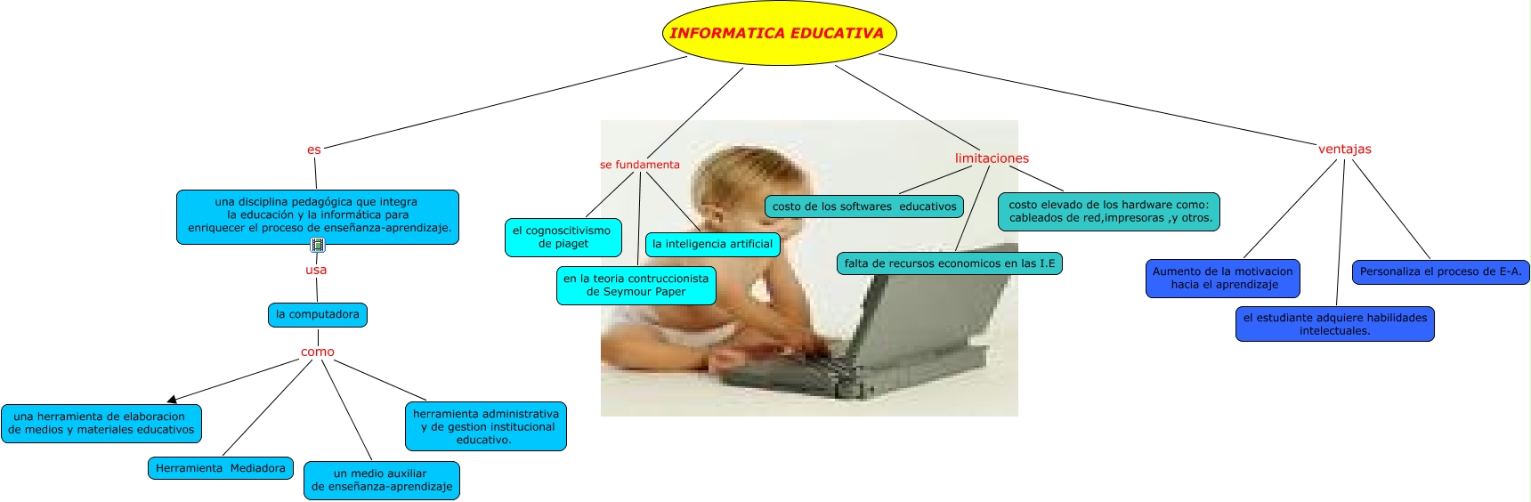 Este Cmap, tiene información relacionada con: INFORMATICA EDUCATIVA, la computadora como herramienta administrativa y de gestion institucional educativo., la computadora como una herramienta de elaboracion de medios y materiales educativos, INFORMATICA EDUCATIVA limitaciones costo elevado de los hardware como: cableados de red,impresoras ,y otros., INFORMATICA EDUCATIVA ventajas Aumento de la motivacion hacia el aprendizaje, una disciplina pedagógica que integra la educación y la informática para enriquecer el proceso de enseñanza-aprendizaje. usa la computadora, INFORMATICA EDUCATIVA limitaciones costo de los softwares educativos, INFORMATICA EDUCATIVA se fundamenta el cognoscitivismo de piaget, INFORMATICA EDUCATIVA ventajas Personaliza el proceso de E-A., INFORMATICA EDUCATIVA se fundamenta la inteligencia artificial, INFORMATICA EDUCATIVA es una disciplina pedagógica que integra la educación y la informática para enriquecer el proceso de enseñanza-aprendizaje., INFORMATICA EDUCATIVA ventajas el estudiante adquiere habilidades intelectuales., la computadora como Herramienta Mediadora, INFORMATICA EDUCATIVA limitaciones falta de recursos economicos en las I.E, INFORMATICA EDUCATIVA se fundamenta en la teoria contruccionista de Seymour Paper, la computadora como un medio auxiliar de enseñanza-aprendizaje
