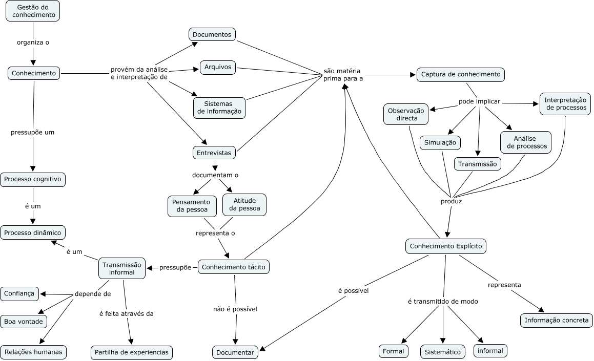 Esse mapa conceitual, produzido no IHMC CmapTools, tem a informação relacionada a: Gestão do Conhecimento - A captura do conhecimento entre profissionais 3.0, Conhecimento pressupõe um Processo cognitivo, Conhecimento provém da análise e interpretação de Documentos, Conhecimento provém da análise e interpretação de Arquivos, Transmissão informal depende de Relações humanas, Captura de conhecimento pode implicar Análise de processos, Conhecimento provém da análise e interpretação de Sistemas de informação, Conhecimento Explícito é possível Documentar, Conhecimento Explícito é transmitido de modo Formal, Captura de conhecimento pode implicar Simulação, Captura de conhecimento pode implicar Interpretação de processos, Conhecimento Explícito é transmitido de modo Sistemático, Transmissão produz Conhecimento Explícito, Interpretação de processos produz Conhecimento Explícito, Transmissão informal depende de Boa vontade, Conhecimento Explícito representa Informação concreta, Documentos são matéria prima para a Captura de conhecimento, Captura de conhecimento pode implicar Transmissão, Conhecimento provém da análise e interpretação de Entrevistas, Entrevistas documentam o Pensamento da pessoa, Pensamento da pessoa representa o Conhecimento tácito