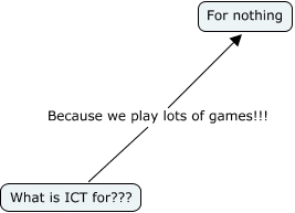 Esse mapa conceitual, produzido no IHMC CmapTools, tem a informação relacionada a: Teste, What is ICT for??? Because we play lots of games!!! For nothing