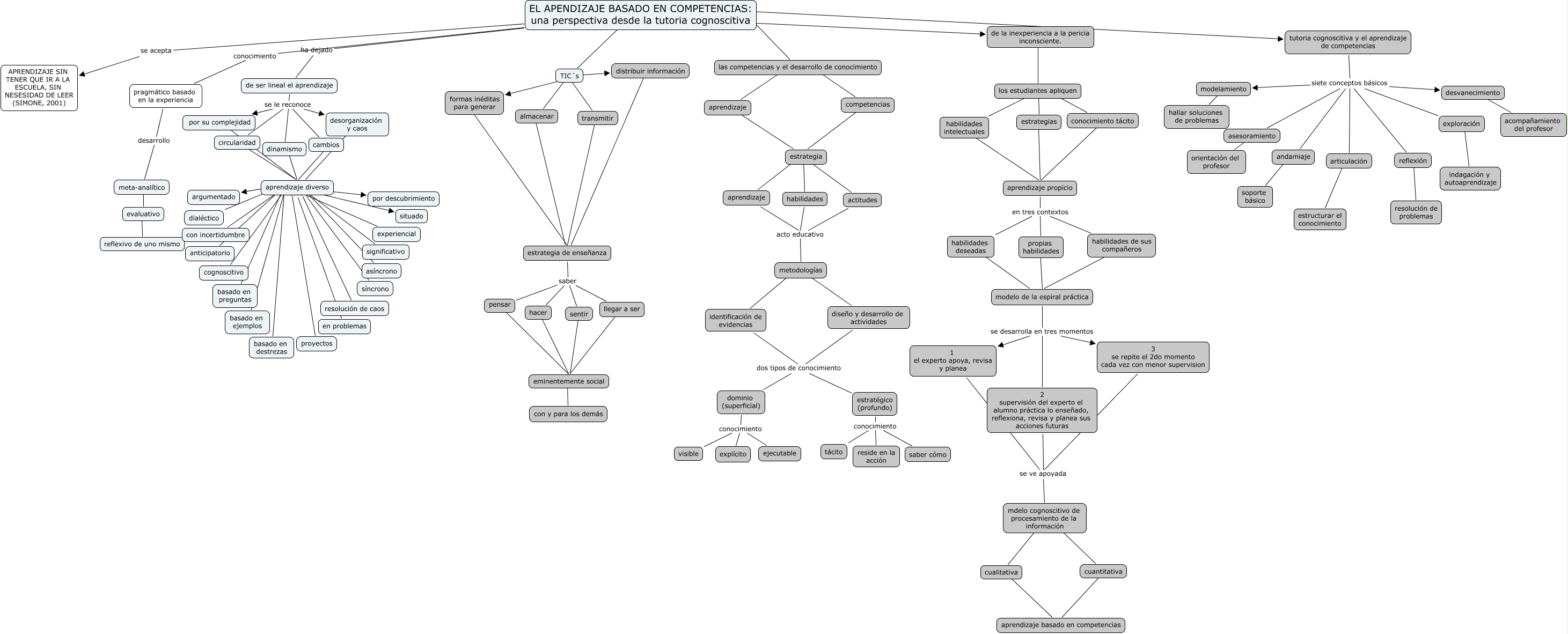 Este Cmap, tiene información relacionada con: aprendizaje basado en competencias, EL APENDIZAJE BASADO EN COMPETENCIAS: una perspectiva desde la tutoria cognoscitiva se acepta APRENDIZAJE SIN TENER QUE IR A LA ESCUELA, SIN NESESIDAD DE LEER (SIMONE, 2001), llegar a ser ???? eminentemente social, estrategia ???? actitudes, habilidades intelectuales ???? aprendizaje propicio, aprendizaje diverso ???? basado en ejemplos, dominio (superficial) conocimiento visible, mdelo cognoscitivo de procesamiento de la información ???? cualitativa, aprendizaje diverso ???? situado, evaluativo ???? reflexivo de uno mismo, mdelo cognoscitivo de procesamiento de la información ???? cuantitativa, meta-analítico ???? evaluativo, identificación de evidencias dos tipos de conocimiento dominio (superficial), estrategias ???? aprendizaje propicio, de ser lineal el aprendizaje se le reconoce desorganización y caos, EL APENDIZAJE BASADO EN COMPETENCIAS: una perspectiva desde la tutoria cognoscitiva ???? TIC´s, pragmático basado en la experiencia desarrollo meta-analítico, habilidades acto educativo metodologías, habilidades deseadas ???? modelo de la espiral práctica, de ser lineal el aprendizaje se le reconoce cambios, los estudiantes apliquen ???? habilidades intelectuales