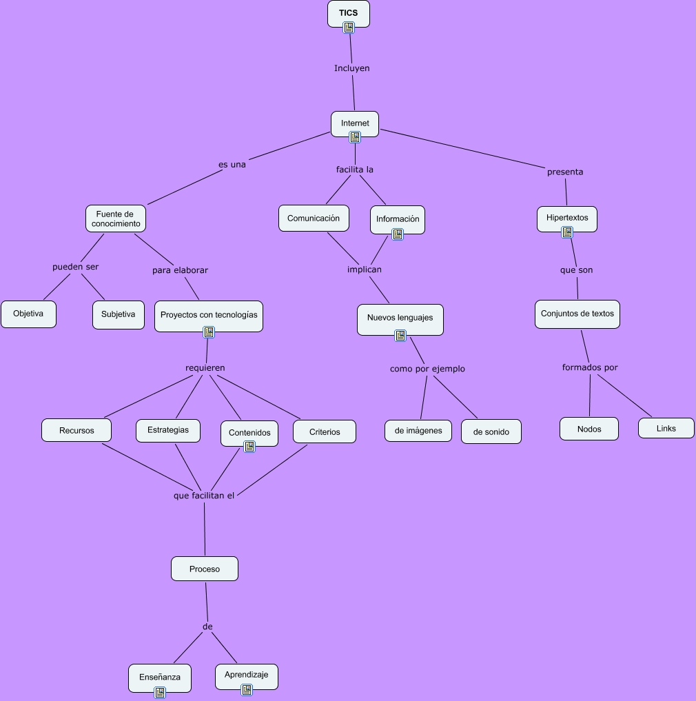 Este Cmap, tiene información relacionada con: mapa tics, Recursos que facilitan el Proceso, Conjuntos de textos formados por Nodos, Proyectos con tecnologías requieren Criterios, Comunicación implican Nuevos lenguajes, Nuevos lenguajes como por ejemplo de imágenes, Internet presenta Hipertextos, Conjuntos de textos formados por Links, Criterios que facilitan el Proceso, Proceso de Enseñanza, Información implican Nuevos lenguajes, Internet es una Fuente de conocimiento, Estrategias que facilitan el Proceso, Hipertextos que son Conjuntos de textos, Proceso de Aprendizaje, Fuente de conocimiento pueden ser Subjetiva, Contenidos que facilitan el Proceso, TICS Incluyen Internet, Nuevos lenguajes como por ejemplo de sonido, Proyectos con tecnologías requieren Estrategias, Fuente de conocimiento para elaborar Proyectos con tecnologías