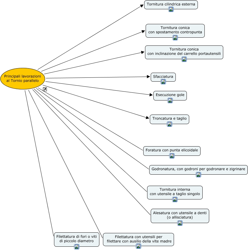 Questa Cmap, creata con IHMC CmapTools, contiene informazioni relative a: Principali lavorazioni al tornio, Principali lavorazioni al Tornio parallelo Tornitura cilindrica esterna, Principali lavorazioni al Tornio parallelo Alesatura con utensile a denti (o allisciatura), Principali lavorazioni al Tornio parallelo Esecuzione gole, Principali lavorazioni al Tornio parallelo Godronatura, con godroni per godronare e zigrinare, Principali lavorazioni al Tornio parallelo Troncatura e taglio, Principali lavorazioni al Tornio parallelo Tornitura conica con spostamento contropunta, Principali lavorazioni al Tornio parallelo Sfacciatura, Principali lavorazioni al Tornio parallelo Tornitura conica con inclinazione del carrello portautensili, Principali lavorazioni al Tornio parallelo Tornitura interna con utensile a taglio singolo, Principali lavorazioni al Tornio parallelo Foratura con punta elicoidale, Principali lavorazioni al Tornio parallelo Filettatura con utensili per filettare con ausilio della vite madre, Principali lavorazioni al Tornio parallelo Filettatura di fori o viti di piccolo diametro