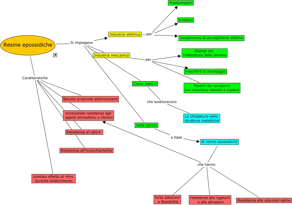 Questa Cmap, creata con IHMC CmapTools, contiene informazioni relative a: Resine epossidiche, Resine epossidiche Caratteristiche Limitato effetto di ritiro durante liindurimento, di resine epossidiche che hanno eccezionale resistenza agli agenti atmosferici e chimici, Resine epossidiche Si impiegano Industria meccanica, di resine epossidiche che hanno forte adesione e flessibilità, Resine epossidiche Caratteristiche eccezionale resistenza agli agenti atmosferici e chimici, di resine epossidiche che hanno Resistenza alle soluzioni saline, Resine epossidiche Si impiegano Industria elettrica, Resine epossidiche Caratteristiche Elevate proprietà elettroisolanti, Resine epossidiche Si impiegano nelle vernici, Industria elettrica per Trasformatori, Resine epossidiche Si impiegano Come adesivi, di resine epossidiche che hanno resistenza alle rigature e alle abrasioni, nelle vernici a base di resine epossidiche, Industria elettrica per rivestimento di avvolgimenti elettrici, Industria meccanica per maschere di montaggio, Industria meccanica per Stampi per l'imbutitura delle lamiere, Industria meccanica per Modelli da riprodurre con macchine utensili a copiare, Come adesivi che sostituiscono Le chiodature nelle strutture metalliche, Resine epossidiche Caratteristiche Resistenza all'invecchiamento, Resine epossidiche Caratteristiche Resistenza al calore