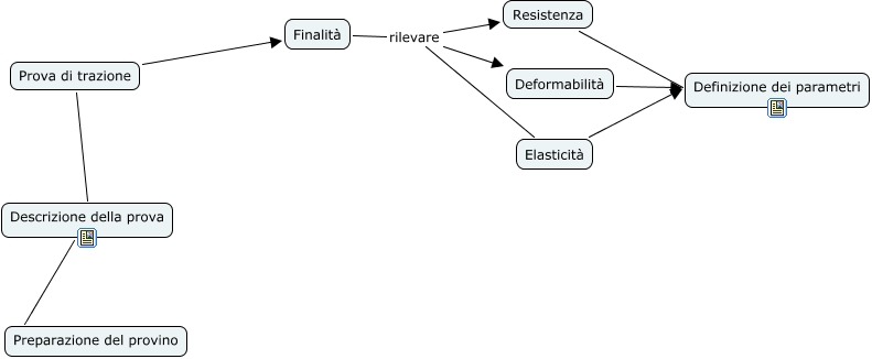 Questa Cmap, creata con IHMC CmapTools, contiene informazioni relative a: Prova di trazione, Finalità rilevare Resistenza, Descrizione della prova Preparazione del provino, Prova di trazione Descrizione della prova, Elasticità Definizione dei parametri, Deformabilità Definizione dei parametri, Resistenza Definizione dei parametri, Finalità rilevare Elasticità, Finalità rilevare Deformabilità, Prova di trazione Finalità