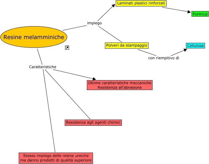 Questa Cmap, creata con IHMC CmapTools, contiene informazioni relative a: Resine melamminiche, Laminati plastici rinforzati Formica, Resine melamminiche Caratteristiche Ottime caratteristiche meccaniche Resistenza all'abrasione, Resine melamminiche Caratteristiche Resistenza agli agenti chimici, Resine melamminiche impiego Laminati plastici rinforzati, Resine melamminiche impiego Polveri da stampaggio, Polveri da stampaggio con riempitivo di Cellulosa, Resine melamminiche Caratteristiche Stesso impiego delle resine ureiche ma danno prodotti di qualità superiore