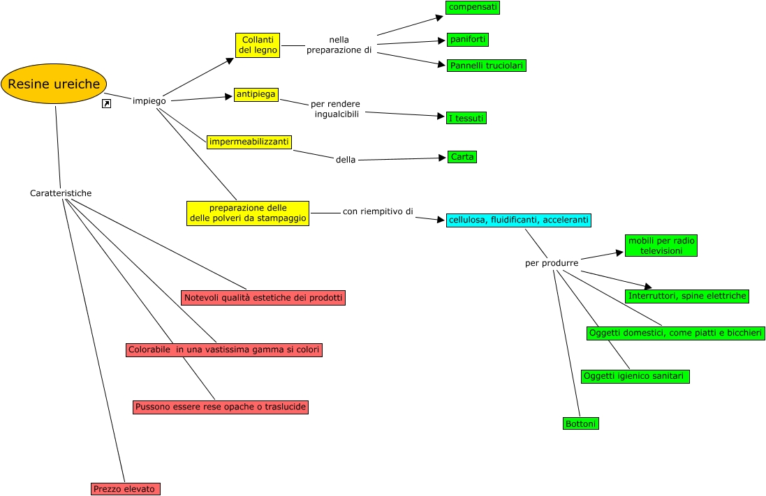 Questa Cmap, creata con IHMC CmapTools, contiene informazioni relative a: Resine ureiche, Resine ureiche Caratteristiche Notevoli qualità estetiche dei prodotti, cellulosa, fluidificanti, acceleranti per produrre mobili per radio televisioni, cellulosa, fluidificanti, acceleranti per produrre Oggetti domestici, come piatti e bicchieri, impermeabilizzanti della Carta, Resine ureiche Caratteristiche Prezzo elevato, cellulosa, fluidificanti, acceleranti per produrre Interruttori, spine elettriche, Collanti del legno nella preparazione di Pannelli truciolari, Resine ureiche impiego antipiega, Resine ureiche impiego preparazione delle delle polveri da stampaggio, Collanti del legno nella preparazione di compensati, cellulosa, fluidificanti, acceleranti per produrre Bottoni, Resine ureiche Caratteristiche Colorabile in una vastissima gamma si colori, Collanti del legno nella preparazione di paniforti, Resine ureiche impiego impermeabilizzanti, preparazione delle delle polveri da stampaggio con riempitivo di cellulosa, fluidificanti, acceleranti, Resine ureiche Caratteristiche Pussono essere rese opache o traslucide, Resine ureiche impiego Collanti del legno, cellulosa, fluidificanti, acceleranti per produrre Oggetti igienico sanitari, antipiega per rendere ingualcibili I tessuti