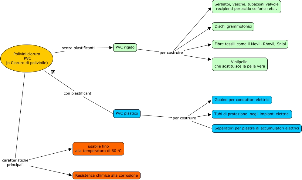 Questa Cmap, creata con IHMC CmapTools, contiene informazioni relative a: Polivinilcloruro, PVC plastico per costruire Guaine per conduttori elettrici, Polivinilcloruro PVC (o Cloruro di polivinile) caratteristiche principali usabile fino alla temperatura di 60 °C, PVC rigido per costruire Fibre tessili come il Movil, Rhovil, Sniol, PVC rigido per costruire Dischi grammofonici, PVC rigido per costruire Serbatoi, vasche, tubazioni,valvole recipienti per acido solforico etc.., PVC rigido per costruire Vinilpelle che sostituisce la pelle vera, Polivinilcloruro PVC (o Cloruro di polivinile) caratteristiche principali Resistenza chimica alla corrosione, Polivinilcloruro PVC (o Cloruro di polivinile) senza plastificanti PVC rigido, PVC plastico per costruire Separatori per piastre di accumulatori elettrici, Polivinilcloruro PVC (o Cloruro di polivinile) con plastificanti PVC plastico, PVC plastico per costruire Tubi di protezione negli impianti elettrici