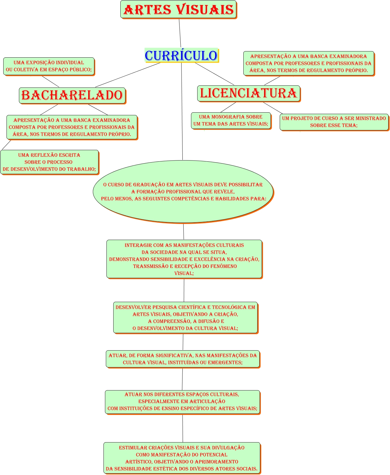 Esse mapa conceitual, produzido no IHMC CmapTools, tem a informação relacionada a: Araci Moreira da Silva, BACHARELADO uma reflexão escrita sobre o processo de desenvolvimento do trabalho;, atuar, de forma significativa, nas manifestações da cultura visual, instituídas ou emergentes; atuar nos diferentes espaços culturais, especialmente em articulação com instituições de ensino específico de Artes Visuais;, O curso de graduação em Artes Visuais deve possibilitar a formação profissional que revele, pelo menos, as seguintes competências e habilidades para: interagir com as manifestações culturais da sociedade na qual se situa, demonstrando sensibilidade e excelência na criação, transmissão e recepção do fenômeno visual;, BACHARELADO apresentação a uma banca examinadora composta por professores e profissionais da área, nos termos de regulamento próprio., LICENCIATURA apresentação a uma banca examinadora composta por professores e profissionais da área, nos termos de regulamento próprio., LICENCIATURA uma monografia sobre um tema das Artes Visuais;, atuar nos diferentes espaços culturais, especialmente em articulação com instituições de ensino específico de Artes Visuais; estimular criações visuais e sua divulgação como manifestação do potencial artístico, objetivando o aprimoramento da sensibilidade estética dos diversos atores sociais., BACHARELADO uma exposição individual ou coletiva em espaço público;, Artes Visuais currículo LICENCIATURA, interagir com as manifestações culturais da sociedade na qual se situa, demonstrando sensibilidade e excelência na criação, transmissão e recepção do fenômeno visual; desenvolver pesquisa científica e tecnológica em Artes Visuais, objetivando a criação, a compreensão, a difusão e o desenvolvimento da cultura visual;, LICENCIATURA um projeto de curso a ser ministrado sobre esse tema;, Artes Visuais currículo O curso de graduação em Artes Visuais deve possibilitar a formação profissional que revele, pelo menos, as seguintes competências e habilidades para:, desenvolver pesquisa científica e tecnológica em Artes Visuais, objetivando a criação, a compreensão, a difusão e o desenvolvimento da cultura visual; atuar, de forma significativa, nas manifestações da cultura visual, instituídas ou emergentes;, Artes Visuais currículo BACHARELADO
