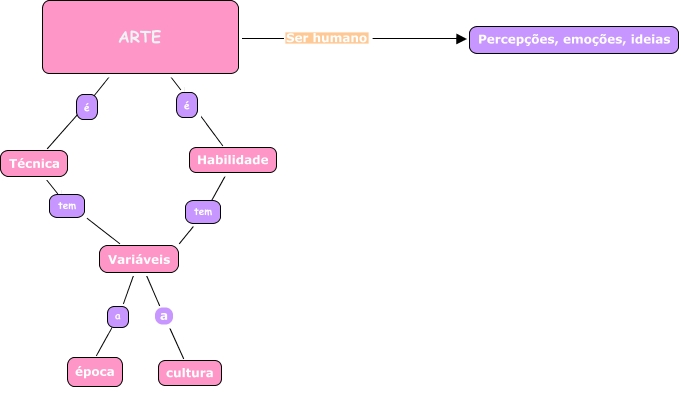 Esse mapa conceitual, produzido no IHMC CmapTools, tem a informação relacionada a: RobiancaMunaretti, Variáveis época, ARTE Ser humano Percepções, emoções, ideias, ARTE Habilidade, ARTE Técnica, Habilidade Variáveis, Técnica Variáveis, Variáveis a cultura