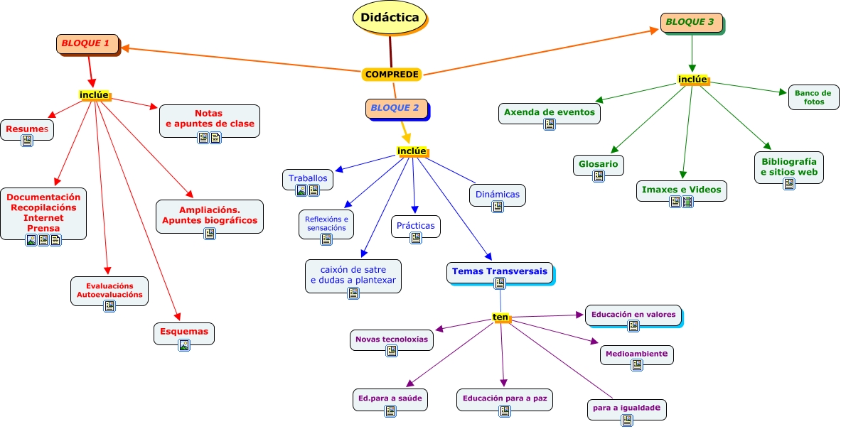 Este Cmap, tiene información relacionada con: Didáctica Xeral 1.PABLOVEIGA, BLOQUE 3 inclúe Bibliografía e sitios web, BLOQUE 2 inclúe Reflexións e sensacións, BLOQUE 1 inclúe Notas e apuntes de clase, Temas Transversais ten Novas tecnoloxías, BLOQUE 3 inclúe Glosario, BLOQUE 2 inclúe Traballos, BLOQUE 1 inclúe Ampliacións. Apuntes biográficos, Didáctica COMPREDE BLOQUE 3, BLOQUE 2 inclúe Dinámicas, Temas Transversais ten Educación en valores, BLOQUE 2 inclúe Temas Transversais, Temas Transversais ten Ed.para a saúde, Temas Transversais ten Medioambiente, BLOQUE 1 inclúe Resumes, Temas Transversais ten Educación para a paz, BLOQUE 1 inclúe Evaluacións Autoevaluacións, BLOQUE 1 inclúe Documentación Recopilacións Internet Prensa, BLOQUE 3 inclúe Banco de fotos, Temas Transversais ten para a igualdade, Didáctica COMPREDE BLOQUE 1