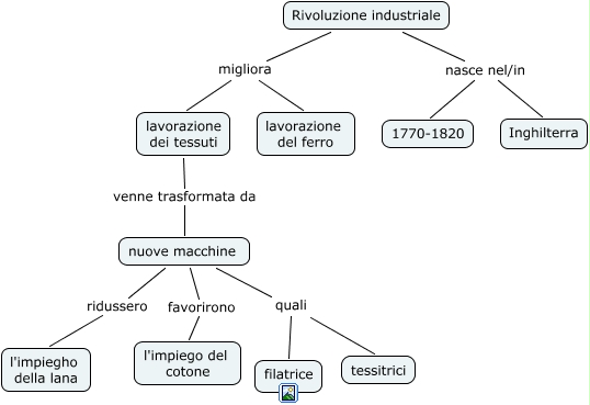 Questa Cmap, creata con IHMC CmapTools, contiene informazioni relative a: rivoluzione industriale, nuove macchine quali tessitrici, Rivoluzione industriale migliora lavorazione dei tessuti, Rivoluzione industriale migliora lavorazione del ferro, nuove macchine quali filatrice, nuove macchine favorirono l'impiego del cotone, lavorazione dei tessuti venne trasformata da nuove macchine, Rivoluzione industriale nasce nel/in Inghilterra, nuove macchine ridussero l'impiegho della lana, Rivoluzione industriale nasce nel/in 1770-1820