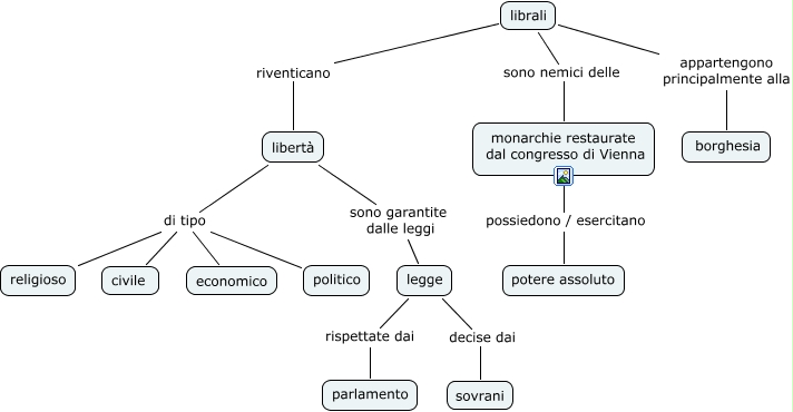 Questa Cmap, creata con IHMC CmapTools, contiene informazioni relative a: I liberali dell'Ottocento - martina, legge decise dai sovrani, libertà sono garantite dalle leggi legge, libertà di tipo religioso, librali riventicano libertà, libertà di tipo civile, librali sono nemici delle monarchie restaurate dal congresso di Vienna, monarchie restaurate dal congresso di Vienna possiedono / esercitano potere assoluto, librali appartengono principalmente alla borghesia, libertà di tipo politico, legge rispettate dai parlamento, libertà di tipo economico