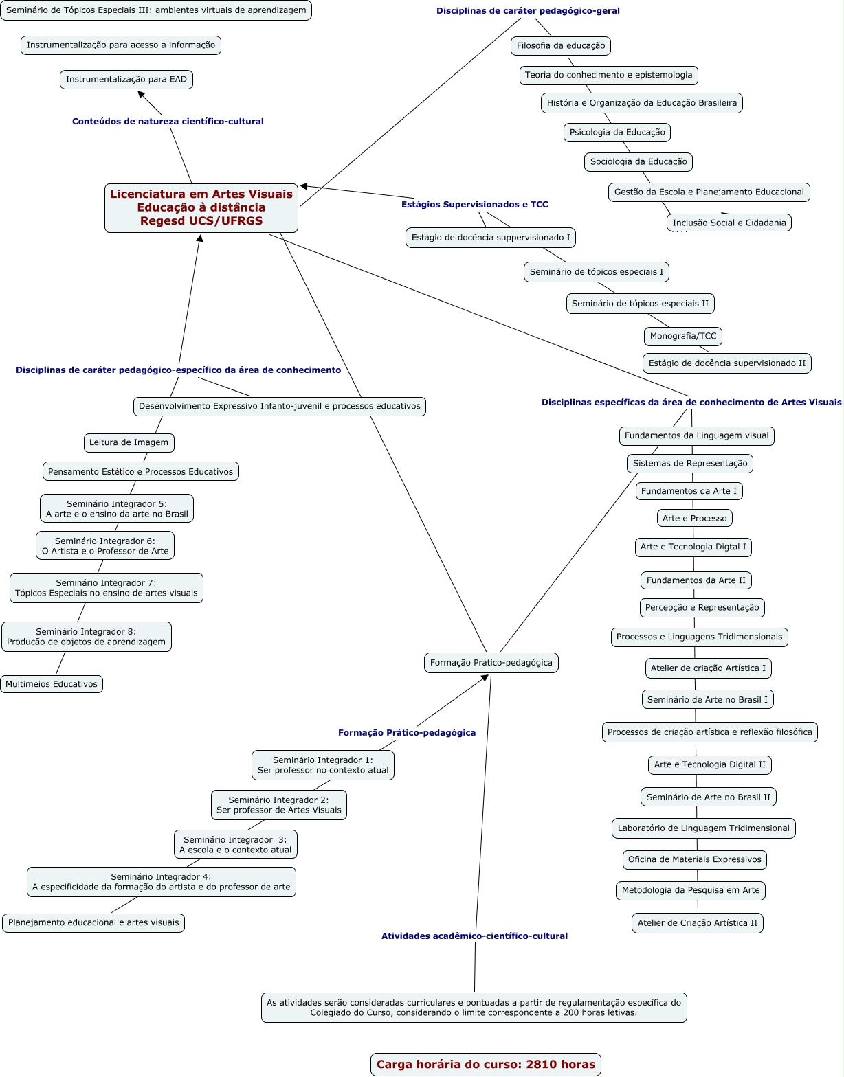 Esse mapa conceitual, produzido no IHMC CmapTools, tem a informação relacionada a: Curriculo de Artes, Filosofia da educação Disciplinas de caráter pedagógico-geral Licenciatura em Artes Visuais Educação à distância Regesd UCS/UFRGS, Planejamento educacional e artes visuais Formação Prático-pedagógica Formação Prático-pedagógica, Estágio de docência supervisionado II Estágios Supervisionados e TCC Estágio de docência suppervisionado I, Licenciatura em Artes Visuais Educação à distância Regesd UCS/UFRGS Disciplinas específicas da área de conhecimento de Artes Visuais Atelier de Criação Artística II, Formação Prático-pedagógica Disciplinas específicas da área de conhecimento de Artes Visuais Atelier de Criação Artística II, Filosofia da educação ???? Inclusão Social e Cidadania, Formação Prático-pedagógica ???? Licenciatura em Artes Visuais Educação à distância Regesd UCS/UFRGS, Licenciatura em Artes Visuais Educação à distância Regesd UCS/UFRGS Conteúdos de natureza científico-cultural Instrumentalização para EAD, Multimeios Educativos Disciplinas de caráter pedagógico-específico da área de conhecimento Licenciatura em Artes Visuais Educação à distância Regesd UCS/UFRGS, Formação Prático-pedagógica Atividades acadêmico-científico-cultural As atividades serão consideradas curriculares e pontuadas a partir de regulamentação específica do Colegiado do Curso, considerando o limite correspondente a 200 horas letivas., Estágio de docência supervisionado II Estágios Supervisionados e TCC Licenciatura em Artes Visuais Educação à distância Regesd UCS/UFRGS, Desenvolvimento Expressivo Infanto-juvenil e processos educativos Disciplinas de caráter pedagógico-específico da área de conhecimento Licenciatura em Artes Visuais Educação à distância Regesd UCS/UFRGS