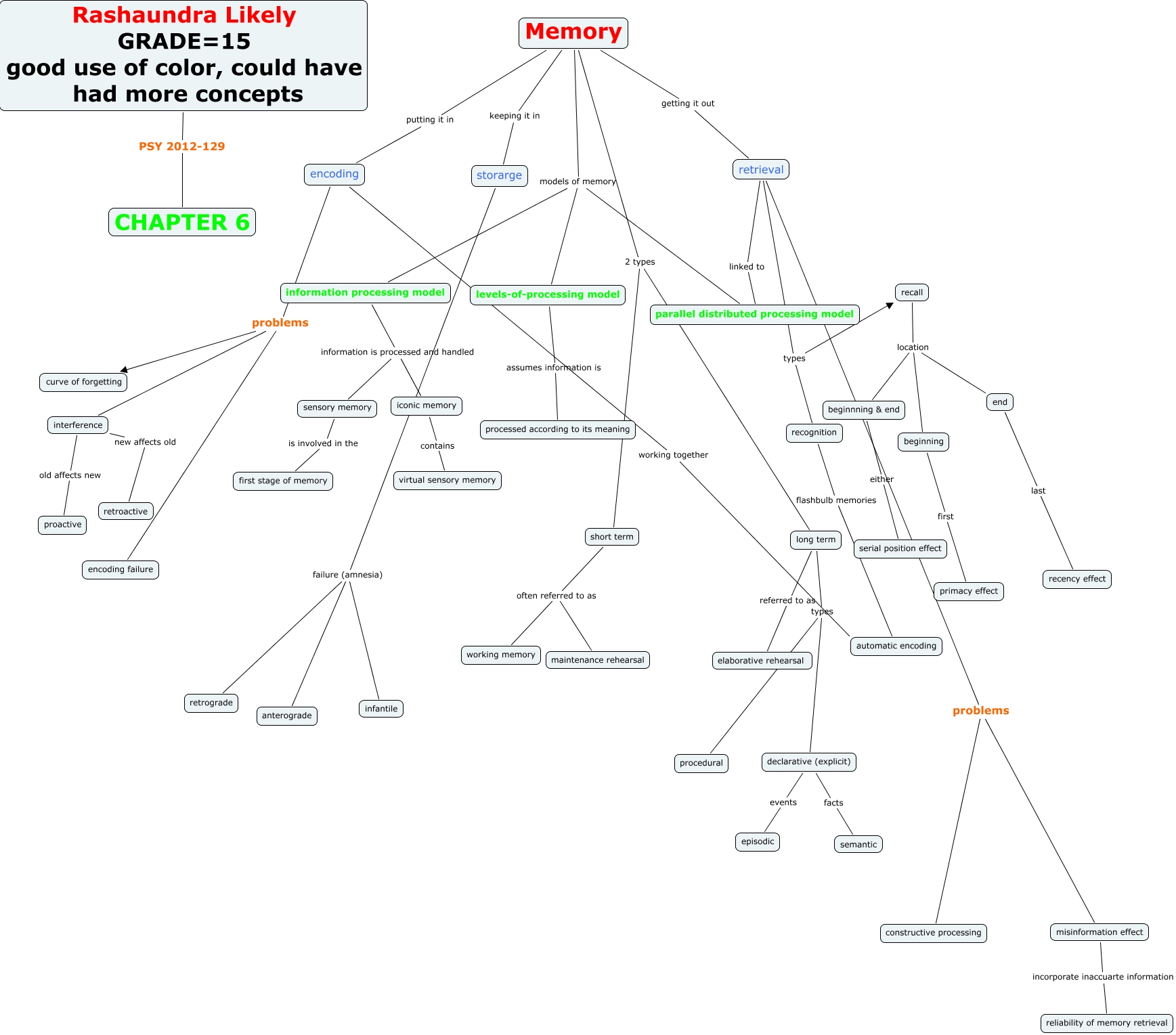 Rashaundra Likely psy2012-129 Chap 6, information processing model information is processed and handled iconic memory, recall location end, long term types declarative (explicit), Memory 2 types long term, Memory models of memory levels-of-processing model, beginning first primacy effect, Memory keeping it in storarge, misinformation effect incorporate inaccuarte information reliability of memory retrieval, encoding problems curve of forgetting, short term often referred to as maintenance rehearsal