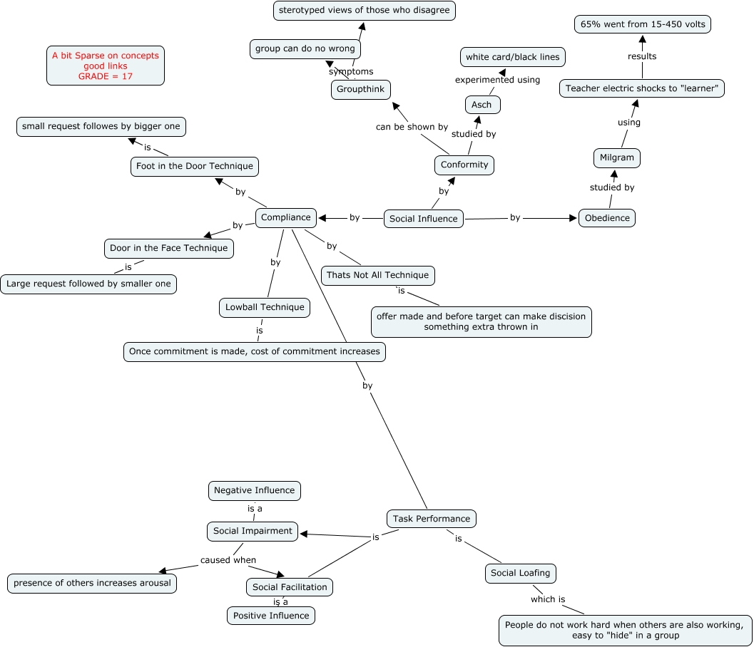 Lucinda Retzloff, Ch. 12, section 129, Dec 7, 2009, Task Performance is Social Loafing, Compliance by Foot in the Door Technique, Lowball Technique is Once commitment is made, cost of commitment increases, Compliance by Thats Not All Technique, Thats Not All Technique is offer made and before target can make discision something extra thrown in, Conformity studied by Asch, Compliance by Task Performance, Social Loafing which is People do not work hard when others are also working, easy to "hide" in a group, Social Facilitation is a Positive Influence, Obedience studied by Milgram