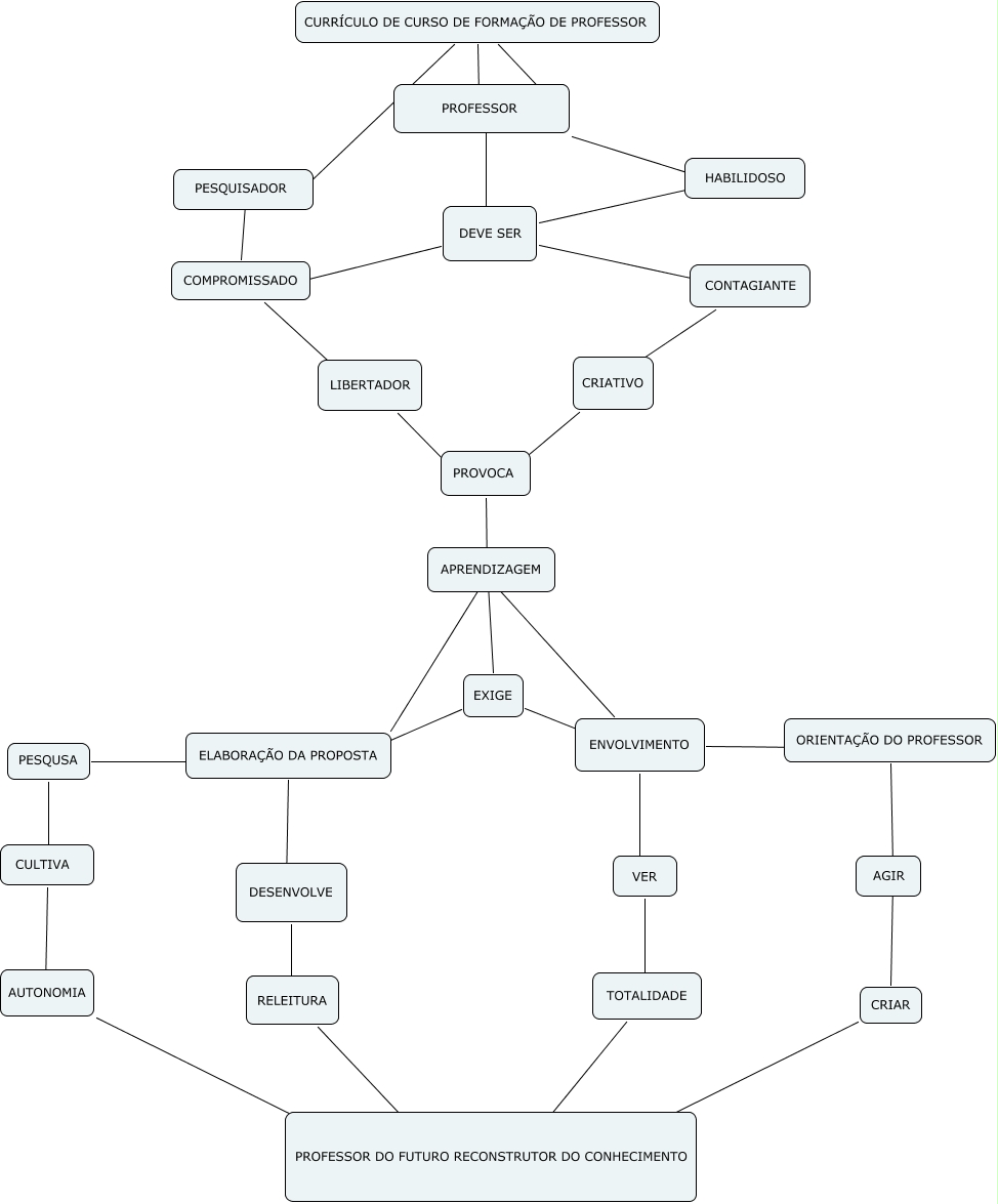 Esse mapa conceitual, produzido no IHMC CmapTools, tem a informação relacionada a: CURRÍCULO DE UM CURSO DE FORMAÇÃO DE PROFESSORES, PROVOCA ???? APRENDIZAGEM, PROFESSOR ???? ????, ELABORAÇÃO DA PROPOSTA ???? DESENVOLVE, CURRÍCULO DE CURSO DE FORMAÇÃO DE PROFESSOR ???? PROFESSOR, CRIATIVO ???? PROVOCA, ORIENTAÇÃO DO PROFESSOR ???? CRIAR, PROVOCA ???? APRENDIZAGEM, COMPROMISSADO ???? LIBERTADOR, ORIENTAÇÃO DO PROFESSOR ???? AGIR, PESQUSA ???? ELABORAÇÃO DA PROPOSTA, VER ???? TOTALIDADE, ENVOLVIMENTO ???? VER, LIBERTADOR ???? PROVOCA, EXIGE ???? ENVOLVIMENTO, RELEITURA ???? PROFESSOR DO FUTURO RECONSTRUTOR DO CONHECIMENTO, PESQUSA ???? CULTIVA, DEVE SER ???? COMPROMISSADO, DEVE SER ???? CONTAGIANTE, PROFESSOR ???? HABILIDOSO, PROVOCA ???? EXIGE