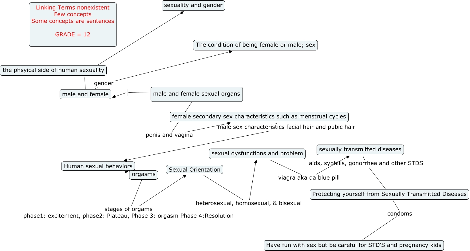 This Concept Map, created with IHMC CmapTools, has information related to: greg edwards, sexual dysfunctions and problem viagra aka da blue pill sexually transmitted diseases, female secondary sex characteristics such as menstrual cycles male sex characteristics facial hair and pubic hair Human sexual behaviors, male and female gender The condition of being female or male; sex, male and female sexual organs male and female, sexually transmitted diseases aids, syphilis, gonorrhea and other STDS Protecting yourself from Sexually Transmitted Diseases, Protecting yourself from Sexually Transmitted Diseases condoms Have fun with sex but be careful for STD'S and pregnancy kids, Human sexual behaviors orgasms, orgasms stages of orgams phase1: excitement, phase2: Plateau, Phase 3: orgasm Phase 4:Resolution Sexual Orientation, male and female sexual organs penis and vagina female secondary sex characteristics such as menstrual cycles, Sexual Orientation heterosexual, homosexual, & bisexual sexual dysfunctions and problem, male and female sexuality and gender