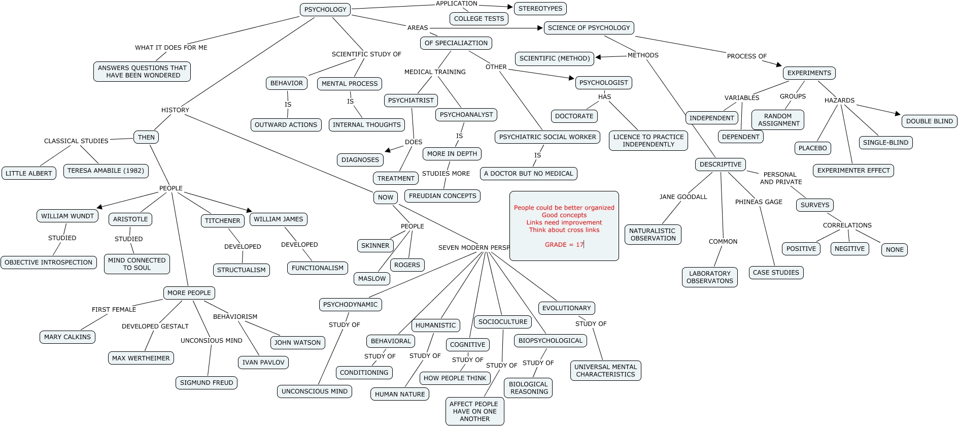 This Concept Map, created with IHMC CmapTools, has information related to: JACOB SHELLEY CH 1 CMAP SECTION 0475, NOW SEVEN MODERN PERSPECIVES HUMANISTIC, THEN CLASSICAL STUDIES TERESA AMABILE (1982), SURVEYS CORRELATIONS NONE, DESCRIPTIVE JANE GOODALL NATURALISTIC OBSERVATION, PSYCHOLOGY WHAT IT DOES FOR ME ANSWERS QUESTIONS THAT HAVE BEEN WONDERED, PSYCHOANALYST IS MORE IN DEPTH, BIOPSYCHOLOGICAL STUDY OF BIOLOGICAL REASONING, SCIENCE OF PSYCHOLOGY METHODS DESCRIPTIVE, MORE PEOPLE FIRST FEMALE MARY CALKINS, DESCRIPTIVE COMMON LABORATORY OBSERVATONS, EXPERIMENTS VARIABLES DEPENDENT, EXPERIMENTS VARIABLES INDEPENDENT, THEN CLASSICAL STUDIES LITTLE ALBERT, THEN PEOPLE ARISTOTLE, NOW SEVEN MODERN PERSPECIVES PSYCHODYNAMIC, PSYCHOLOGY HISTORY NOW, BEHAVIOR IS OUTWARD ACTIONS, PSYCHOLOGY HISTORY THEN, NOW SEVEN MODERN PERSPECIVES SOCIOCULTURE, OF SPECIALIAZTION MEDICAL TRAINING PSYCHIATRIST