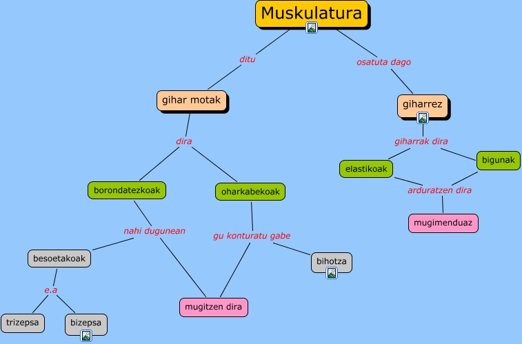 Este Cmap, tiene información relacionada con: muskulatura, oharkabekoak gu konturatu gabe bihotza, borondatezkoak nahi dugunean besoetakoak, giharrez giharrak dira bigunak, besoetakoak e.a bizepsa, gihar motak dira oharkabekoak, borondatezkoak nahi dugunean mugitzen dira, gihar motak dira borondatezkoak, Muskulatura ditu gihar motak, giharrez giharrak dira elastikoak, oharkabekoak gu konturatu gabe bihotza, besoetakoak e.a trizepsa, elastikoak arduratzen dira bigunak, oharkabekoak gu konturatu gabe mugitzen dira, oharkabekoak gu konturatu gabe mugitzen dira, elastikoak arduratzen dira mugimenduaz, Muskulatura osatuta dago giharrez, Muskulatura ditu gihar motak
