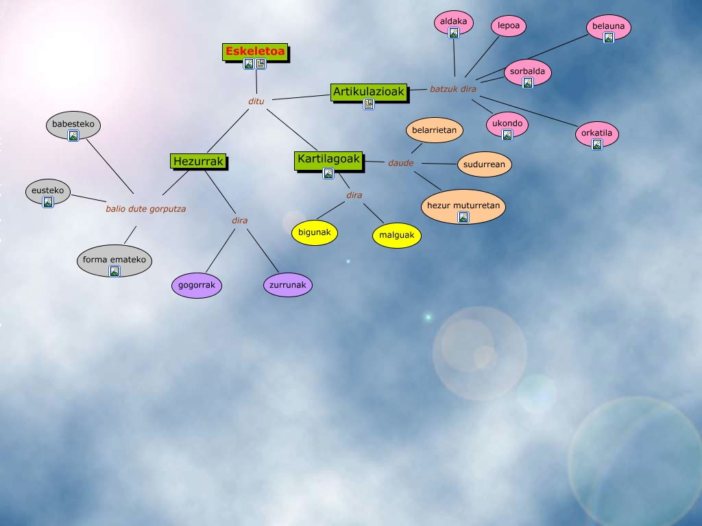 Este Cmap, tiene información relacionada con: Gorputzaren euskarria, Kartilagoak daude hezur muturretan, Artikulazioak batzuk dira belauna, Hezurrak dira gogorrak, Eskeletoa ditu Hezurrak, Kartilagoak dira malguak, Artikulazioak batzuk dira aldaka, Artikulazioak batzuk dira orkatila, Eskeletoa ditu Artikulazioak, Hezurrak dira zurrunak, Kartilagoak daude sudurrean, Hezurrak balio dute gorputza forma emateko, Artikulazioak batzuk dira ukondo, Kartilagoak daude belarrietan, Eskeletoa ditu Kartilagoak, Hezurrak balio dute gorputza eusteko, Hezurrak balio dute gorputza babesteko, Kartilagoak dira bigunak, Artikulazioak batzuk dira sorbalda, Artikulazioak batzuk dira lepoa
