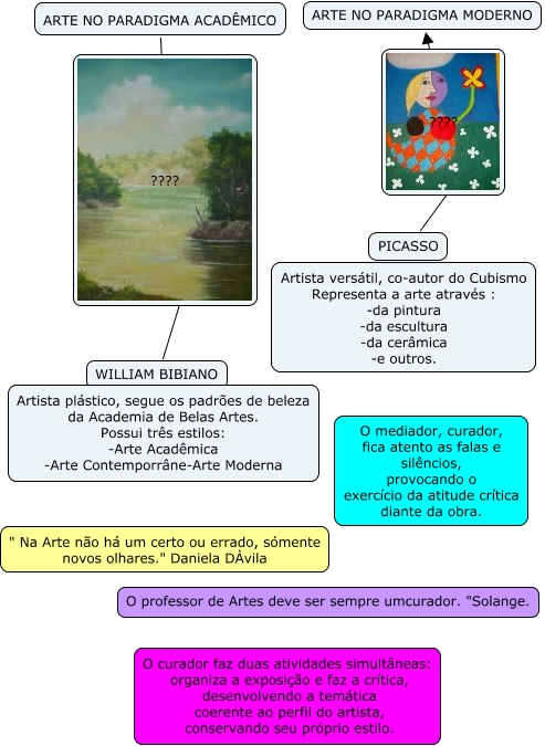 Esse mapa conceitual, produzido no IHMC CmapTools, tem a informação relacionada a: Arte Acadêmica e Arte Moderna, PICASSO ???? ????, ???? ???? ARTE NO PARADIGMA MODERNO, WILLIAM BIBIANO ???? ????, ARTE NO PARADIGMA ACADÊMICO ???? ????