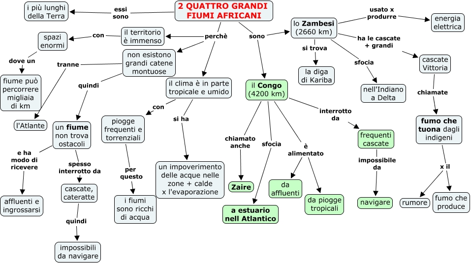 Questa Cmap, creata con IHMC CmapTools, contiene informazioni relative a: 2 QUATTRO GRANDI FIUMI AFRICANI, 2 QUATTRO GRANDI FIUMI AFRICANI essi sono i più lunghi della Terra, fumo che tuona dagli indigeni x il fumo che produce, lo Zambesi (2660 km) usato x produrre energia elettrica, cascate Vittoria chiamate fumo che tuona dagli indigeni, 2 QUATTRO GRANDI FIUMI AFRICANI perchè non esistono grandi catene montuose, 2 QUATTRO GRANDI FIUMI AFRICANI sono lo Zambesi (2660 km), 2 QUATTRO GRANDI FIUMI AFRICANI perchè il territorio è immenso, lo Zambesi (2660 km) ha le cascate + grandi cascate Vittoria, un fiume non trova ostacoli spesso interrotto da cascate, cateratte, lo Zambesi (2660 km) sfocia nell'Indiano a Delta, il clima è in parte tropicale e umido con piogge frequenti e torrenziali, non esistono grandi catene montuose quindi un fiume non trova ostacoli, 2 QUATTRO GRANDI FIUMI AFRICANI perchè il clima è in parte tropicale e umido, non esistono grandi catene montuose tranne l'Atlante, spazi enormi dove un fiume può percorrere migliaia di km, il Congo (4200 km) è alimentato da affluenti, lo Zambesi (2660 km) si trova la diga di Kariba, fumo che tuona dagli indigeni x il rumore, il Congo (4200 km) sfocia a estuario nell Atlantico, il Congo (4200 km) chiamato anche Zaire