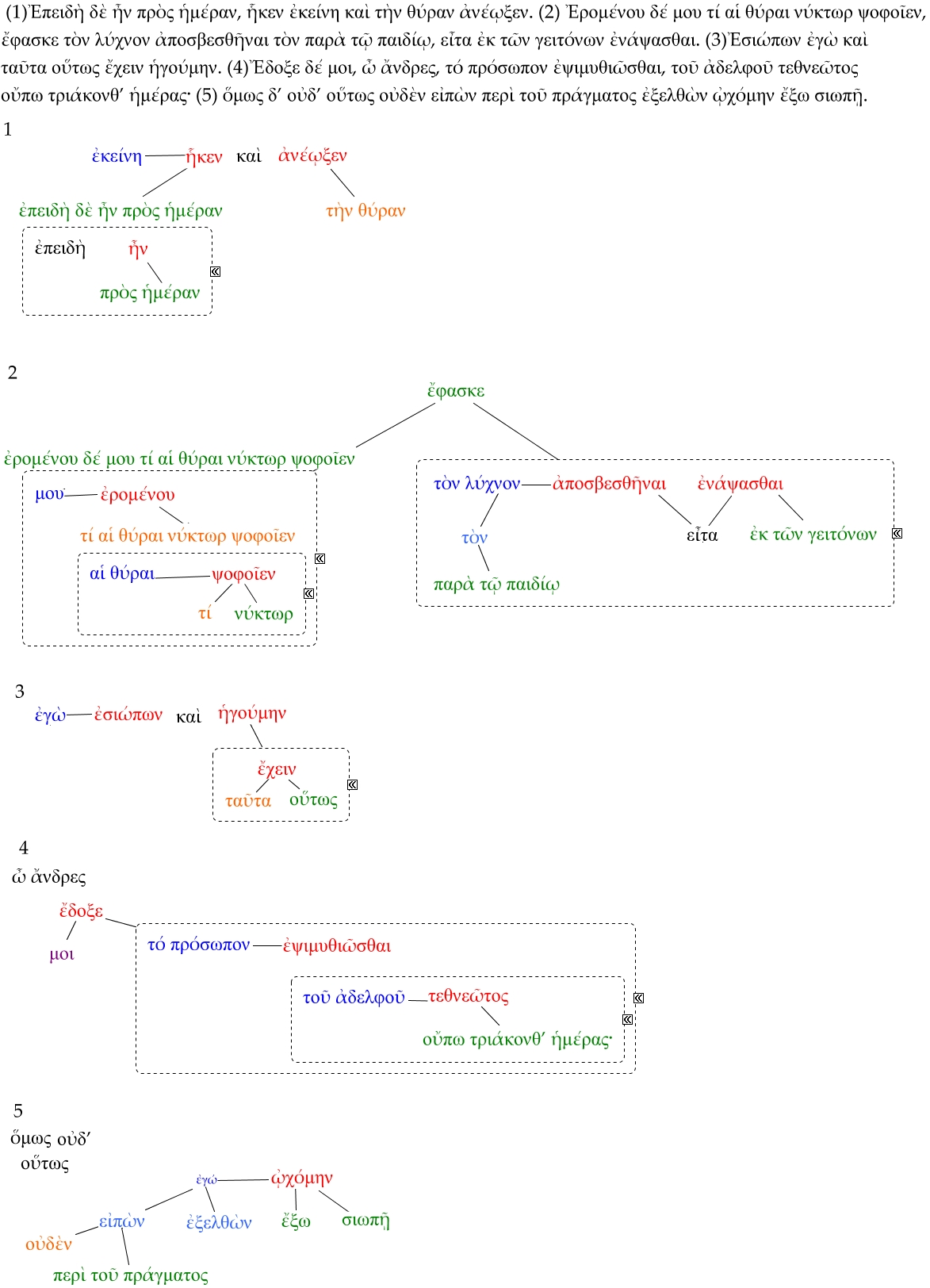 Este Cmap, tiene información relacionada con: LisiasI, fragm.14, οὔπω τριάκονθ’ ἡμέρας· ???? τεθνεῶτος, ἔχειν ???? ταῦτα, τὴν θύραν ???? ἀνέῳξεν, ἔδοξε ???? ????, ἐσιώπων ???? ἐγὼ, τοῦ ἀδελφοῦ ???? τεθνεῶτος, ???? ???? ἡγούμην, ψοφοῖεν ???? αἱ θύραι, οὐδὲν ???? εἰπὼν, οὕτως ???? ἔχειν, ἐσιώπων ???? ἐγὼ, ᾠχόμην ???? ἐγώ, ἐκείνη ???? ἧκεν, ᾠχόμην ???? σιωπῇ, νύκτωρ ???? ψοφοῖεν, ἐκ τῶν γειτόνων ???? ἐνάψασθαι, ἐξελθὼν ???? ἐγώ, πρὸς ἡμέραν ???? ἦν, παρὰ τῷ παιδίῳ ???? τὸν, ἀποσβεσθῆναι ???? τὸν λύχνον