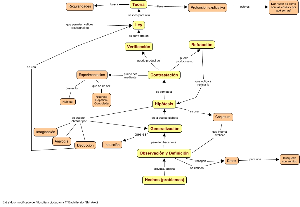 Este Cmap, tiene información relacionada con: metodocientificosm, Observación y Definición se definen Datos, Datos para una Búsqueda con sentido, Pretensión explicativa esto es Dar razón de cómo son las cosas y por qué son así, Experimentación que ha de ser Rigurosa Repetible Controlada, Generalización de la que se elabora Hipótesis, Hechos (problemas) provoca, suscita Observación y Definición, Regularidades que permitan validez provisional de Ley, Refutación que obliga a revisar la Hipótesis, Ley se incorpora a la Teoría, Experimentación que es lo Habitual, Hipótesis se pueden obtener por Deducción, Hipótesis es una Conjetura, Verificación se convierte en Ley, Teoría tiene Pretensión explicativa, Deducción de una Ley, Hipótesis se somete a Contrastación, Teoría busca Regularidades, Hipótesis se pueden obtener por Generalización, Contrastación puede producirse Verificación, Contrastación puede ser mediante Experimentación
