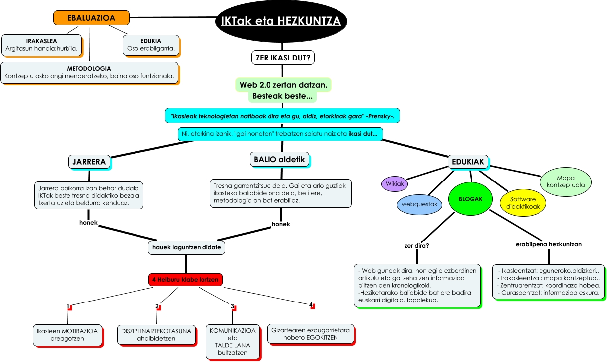 IHMC CmapTools-ekin sortu den kontzeptu-mapa honek honi buruzko informazioa du: Nerea Orbañanos, Ni, etorkina izanik, "gai honetan" trebatzen saiatu naiz eta ikasi dut... Tresna garrantzitsua dela. Gai eta arlo guztiak ikasteko baliabide ona dela, beti ere, metodologia on bat erabiliaz., 4 Helburu klabe lortzen 2 DISZIPLINARTEKOTASUNA ahalbidetzen, Ni, etorkina izanik, "gai honetan" trebatzen saiatu naiz eta ikasi dut... ? JARRERA, BLOGAK zer dira? - Web guneak dira, non egile ezberdinen artikulu eta gai zehatzen informazioa biltzen den kronologikoki. -Heziketarako baliabide bat ere badira, euskarri digitala, topalekua., EDUKIAK ???? Wikiak, EDUKIAK ???? BLOGAK, EBALUAZIOA ???? IRAKASLEA Argitasun handia;hurbila., IKTak eta HEZKUNTZA ???? EBALUAZIOA, EBALUAZIOA ???? METODOLOGIA Kontzeptu asko ongi menderatzeko, baina oso funtzionala., 4 Helburu klabe lortzen 4 Gizartearen ezaugarrietara hobeto EGOKITZEN, JARRERA ???? Jarrera baikorra izan behar dudala IKTak beste tresna didaktiko bezala txertatuz eta beldurra kenduaz., BLOGAK erabilpena hezkuntzan - Ikasleentzat: eguneroko,aldizkari.. - Irakasleentzat: mapa kontzeptua.. - Zentruarentzat: koordinazo hobea. - Gurasoentzat: informazioa eskura., EDUKIAK ???? Mapa kontzeptuala, hauek laguntzen didate ???? 4 Helburu klabe lortzen, Besteak beste... ???? "ikasleak teknologietan natiboak dira eta gu, aldiz, etorkinak gara" -Prensky-., 4 Helburu klabe lortzen 3 KOMUNIKAZIOA eta TALDE LANA bultzatzen, Ni, etorkina izanik, "gai honetan" trebatzen saiatu naiz eta ikasi dut... eduki aldetik EDUKIAK, EDUKIAK ???? webquestak, EBALUAZIOA ???? EDUKIA Oso erabilgarria., IKTak eta HEZKUNTZA ???? Besteak beste...