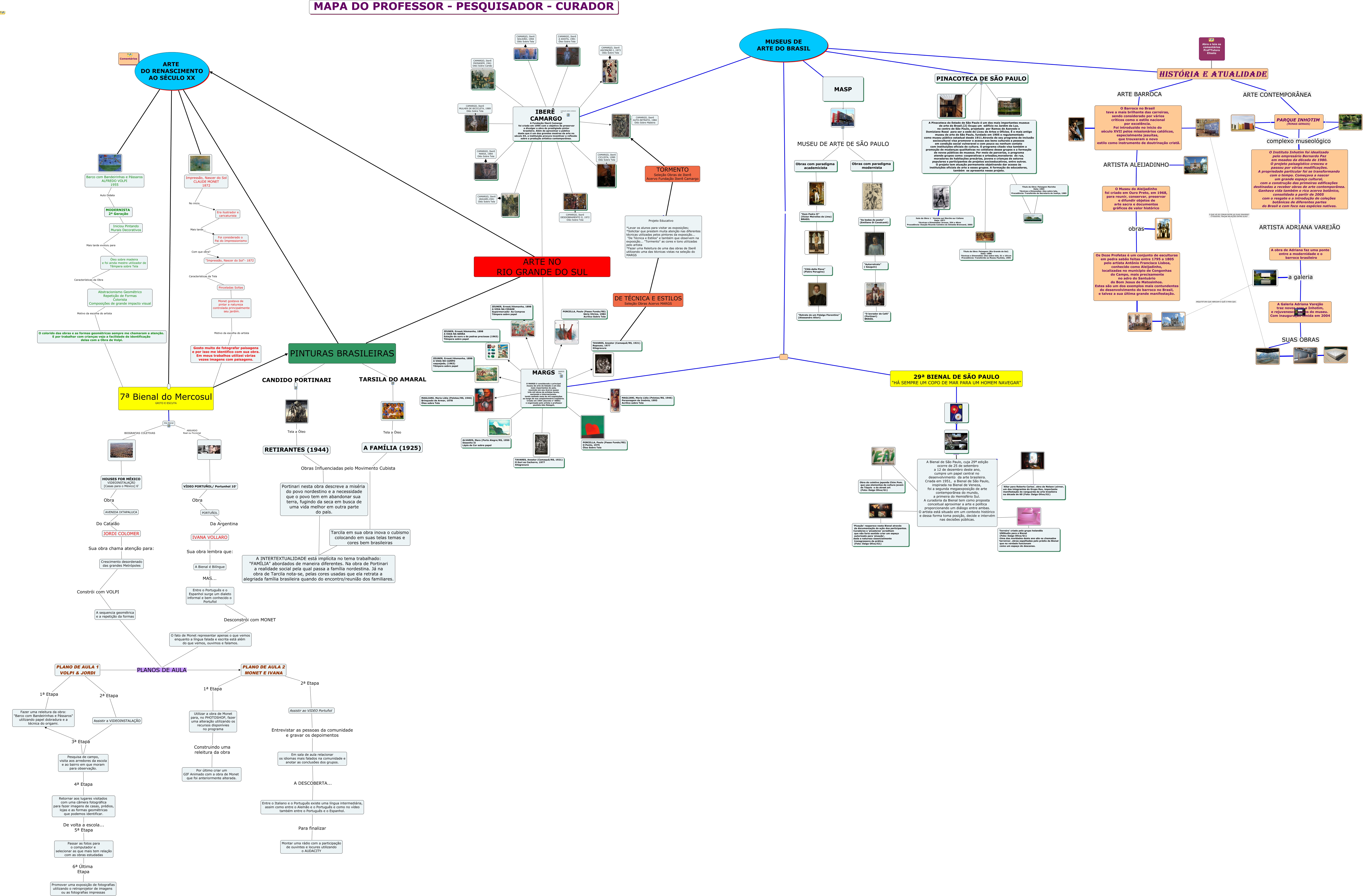 Esse mapa conceitual, produzido no IHMC CmapTools, tem a informação relacionada a: Mapa do Professor-Pesquisador-Curador de Artes Visuais (2012), Utilizar a obra de Monet para, no PHOTOSHOP, fazer uma alteração utilizando os recursos disponívies no programa Construindo uma releitura da obra Por último criar um GIF Animado com a obra de Monet que foi anteriormente alterada.,, MASP ???? MUSEUS DE ARTE DO BRASIL, a galeria A Galeria Adriana Varejão traz novos ares a Inhotim, e rejuvenesce osares do museu. Com inauguração tímida em 2004, ???? ítulo da Obra: L ' Homme qui Marche sur Collone Data: 1877 Técnicas e Dimensões: bronze, 354 x 40cm Procedência: Doação Ricardo Coimbra de Almeida Brennand, 2005, ???? CAMARGO, Iberê JAGUARI,1941 Oléo Sobre Tela, "Città della Pieve" (Pietro Perugino) ????, IBERÊ CAMARGO A Fundação Iberê Camargo foi criada em 1995 com o objetivo de preservar e divulgar a obra do prestigiado pintor brasileiro. Além de aproximar o público deste que é um dos grandes mestres da arte no século XX, a instituição procura incentivar a reflexão sobre a produção artística contemporânea., ARQUITETURA QUE ABRIGAM O QUÊ E PARA QUE., PARQUE INHOTIM (MINAS GERAIS), MARGS O MARGS é considerado o principal museu de arte do Estado e um dos mais importantes do país, reunindo em seu Acervo quase três mil obras de artistas locais, nacionais e internacionais, tendo sediado mais de mil exposições ao longo de sua cinqüentenária trajetória. Criada em 1954 (decreto n° 5065) e organizada pelo artista e professor paulista Ado Malagoli, ????, ???? VÍDEO PORTUÑOL/ Portunhol 10', ARTE DO RENASCIMENTO AO SÉCULO XX ???? PINTURAS BRASILEIRAS, ARTE NO RIO GRANDE DO SUL IBERÊ CAMARGO A Fundação Iberê Camargo foi criada em 1995 com o objetivo de preservar e divulgar a obra do prestigiado pintor brasileiro. Além de aproximar o público deste que é um dos grandes mestres da arte no século XX, a instituição procura incentivar a reflexão sobre a produção artística contemporânea., DE TÉCNICA E ESTILOS Seleção Obras Acervo MARGS ???? TAVARES, Anestor (Camaquã/RS, 1921) Repouso, 1977 Xilogravura, Óleo sobre madeira e foi ainda mestre utilizador de Têmpera sobre Tela Características da Obra Abstracionismo Geométrico Repetição de Formas Colorista Composições de grande impacto visual, "Dom Pedro II" (Victor Meirelles de Lima) BRASIL, 7ª Bienal do Mercosul GRITO E ESCUTA ???? PINTURAS BRASILEIRAS, O fato de Monet representar apenas o que vemos enquanto a língua falada e escrita está além do que vemos, ouvimos e falamos. PLANOS DE AULA PLANO DE AULA 2 MONET E IVANA, PINTURAS BRASILEIRAS ???? ARTE NO RIO GRANDE DO SUL