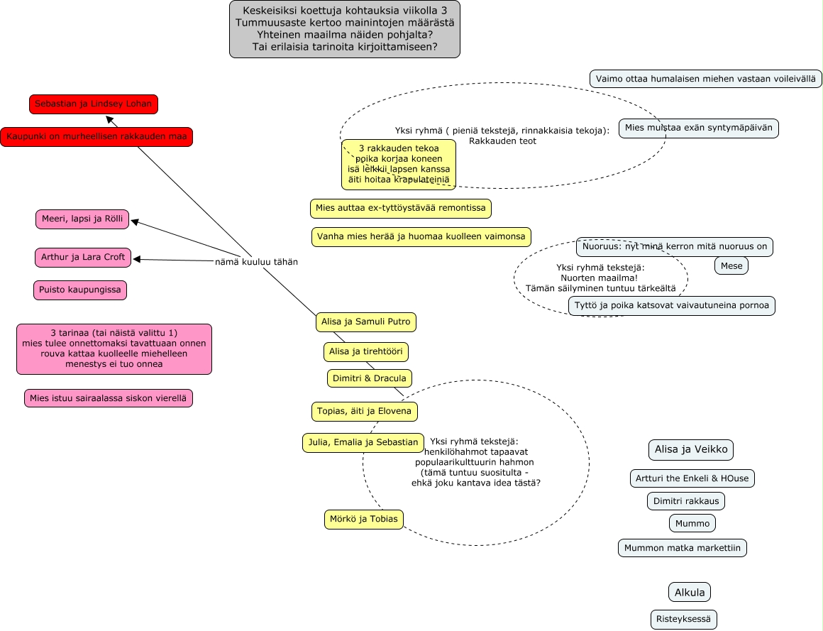 Tämä IHMC CmapToolsilla luotu käsitekartta sisältää tietoa, joka liittyy aiheeseen: ydinkohtauksia, Yksi ryhmä tekstejä: henkilöhahmot tapaavat populaarikulttuurin hahmon (tämä tuntuu suositulta - ehkä joku kantava idea tästä? nämä kuuluu tähän Arthur ja Lara Croft, Yksi ryhmä tekstejä: henkilöhahmot tapaavat populaarikulttuurin hahmon (tämä tuntuu suositulta - ehkä joku kantava idea tästä? nämä kuuluu tähän Sebastian ja Lindsey Lohan, Yksi ryhmä tekstejä: henkilöhahmot tapaavat populaarikulttuurin hahmon (tämä tuntuu suositulta - ehkä joku kantava idea tästä? nämä kuuluu tähän Meeri, lapsi ja Rölli