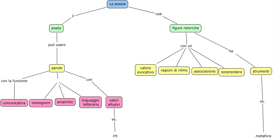 Questa Cmap, creata con IHMC CmapTools, contiene informazioni relative a: la poesia, La poesia il poeta, parole linguaggio letterario, La poesia usa figure retoriche, parole con valori allusivi, figure retoriche con un associazione, parole arcairche, figure retoriche con un valore evocativo, neologismi arcairche, figure retoriche ha strumenti, poeta può usare parole, figure retoriche con un ragioni di ritmo, parole con la funzione comunicativa, strumenti es. metafora, valori allusivi es. irti, neologismi linguaggio letterario, figure retoriche con un sorprendere