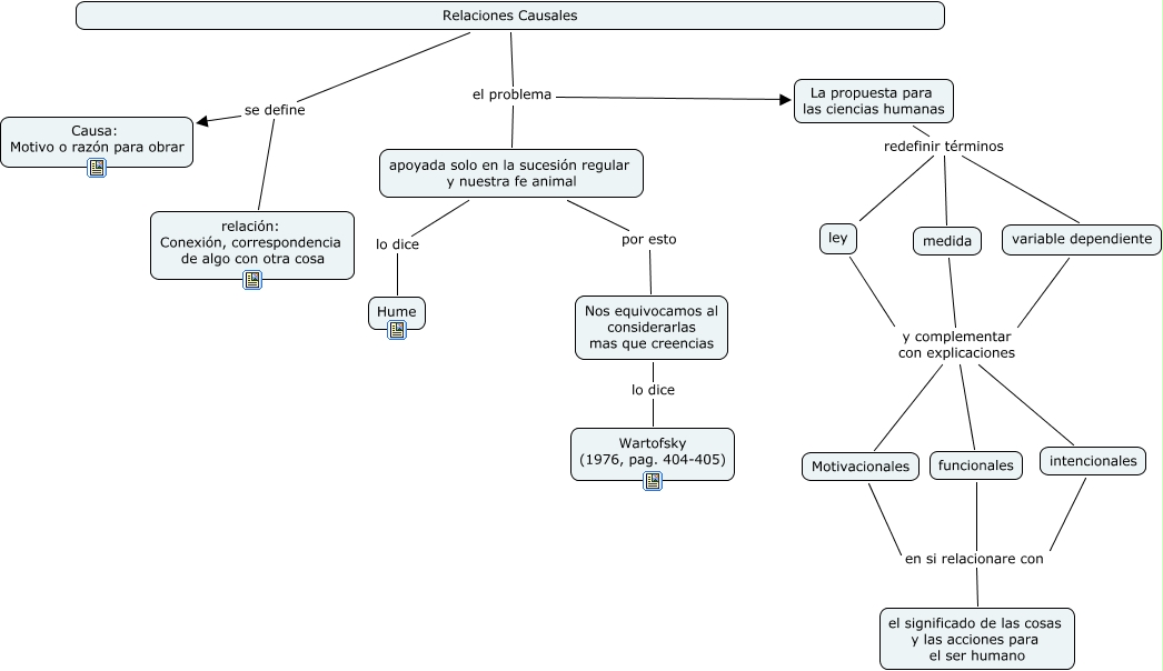 Este Cmap, tiene información relacionada con: No tenemos evidencia de relaciones causales, apoyada solo en la sucesión regular y nuestra fe animal por esto Nos equivocamos al considerarlas mas que creencias, funcionales en si relacionare con el significado de las cosas y las acciones para el ser humano, ley y complementar con explicaciones Motivacionales, medida y complementar con explicaciones intencionales, apoyada solo en la sucesión regular y nuestra fe animal lo dice Hume, variable dependiente y complementar con explicaciones Motivacionales, La propuesta para las ciencias humanas redefinir términos medida, La propuesta para las ciencias humanas redefinir términos ley, ley y complementar con explicaciones intencionales, medida y complementar con explicaciones Motivacionales, La propuesta para las ciencias humanas redefinir términos variable dependiente, Nos equivocamos al considerarlas mas que creencias lo dice Wartofsky (1976, pag. 404-405), Relaciones Causales se define relación: Conexión, correspondencia de algo con otra cosa, Relaciones Causales el problema La propuesta para las ciencias humanas, intencionales en si relacionare con el significado de las cosas y las acciones para el ser humano, variable dependiente y complementar con explicaciones funcionales, medida y complementar con explicaciones funcionales, ley y complementar con explicaciones funcionales, Relaciones Causales se define Causa: Motivo o razón para obrar, Relaciones Causales el problema apoyada solo en la sucesión regular y nuestra fe animal