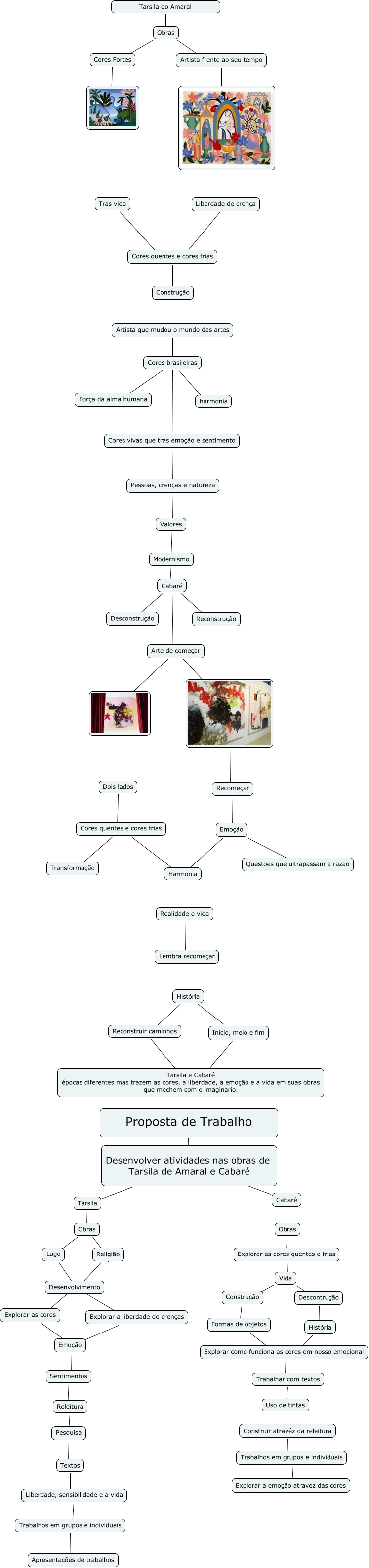 Esse mapa conceitual, produzido no IHMC CmapTools, tem a informação relacionada a: Tarsila e Cabaré, Proposta de Trabalho ???? Desenvolver atividades nas obras de Tarsila de Amaral e Cabaré, Explorar as cores quentes e frias ???? Vida, Cores vivas que tras emoção e sentimento ???? Pessoas, crenças e natureza, Explorar as cores ???? Emoção, Reconstruir caminhos ???? Tarsila e Cabaré épocas diferentes mas trazem as cores, a liberdade, a emoção e a vida em suas obras que mechem com o imaginario., Desenvolvimento ???? Explorar a liberdade de crenças, ???? Tras vida, Cabaré ???? Arte de começar, ???? Recomeçar, Artista frente ao seu tempo ????, Cabaré ???? Obras, Explorar como funciona as cores em nosso emocional ???? Trabalhar com textos, Construção ???? Artista que mudou o mundo das artes, Formas de objetos ???? Explorar como funciona as cores em nosso emocional, Artista que mudou o mundo das artes ???? Cores brasileiras, Desenvolver atividades nas obras de Tarsila de Amaral e Cabaré ???? Tarsila, Cores quentes e cores frias ???? Transformação, Emoção ???? Questões que ultrapassam a razão, Cores brasileiras ???? Força da alma humana, Harmonia ???? Realidade e vida