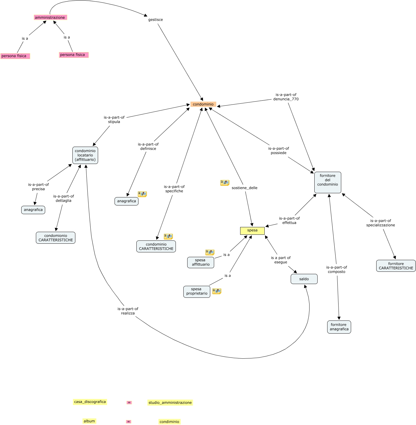 Questa Cmap, creata con IHMC CmapTools, contiene informazioni relative a: CONDOMINIO_PRJ_new, spesa proprietario is a spesa, amministrazione gestisce condominio, persona fisica is a amministrazione, persona fisica is a amministrazione, spesa affittuario is a spesa