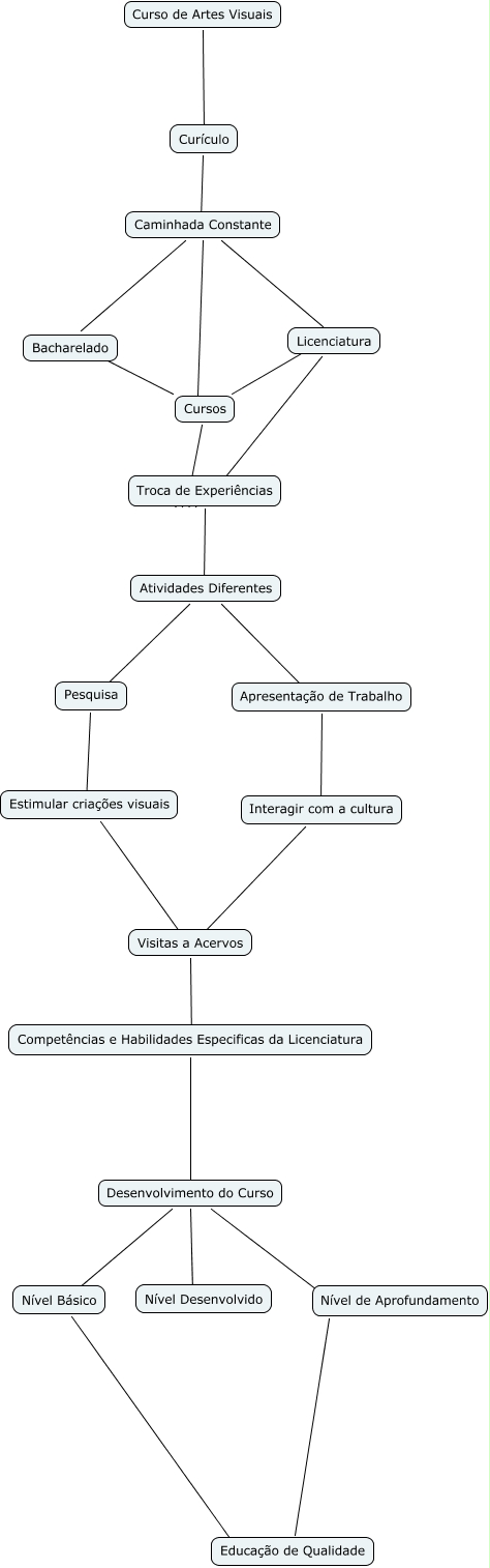 Esse mapa conceitual, produzido no IHMC CmapTools, tem a informação relacionada a: curriculo, Desenvolvimento do Curso ???? Nível Desenvolvido, Curso de Artes Visuais ???? Curículo, Interagir com a cultura ???? Visitas a Acervos, Caminhada Constante ???? Licenciatura, Visitas a Acervos ???? Competências e Habilidades Especificas da Licenciatura, Troca de Experiências A Atividades Diferentes, Desenvolvimento do Curso ???? Nível de Aprofundamento, Competências e Habilidades Especificas da Licenciatura Desen Desenvolvimento do Curso, Apresentação de Trabalho ???? Interagir com a cultura, Curículo ???? Caminhada Constante, Caminhada Constante ???? Bacharelado, Nível Básico ???? Educação de Qualidade, Atividades Diferentes ???? Apresentação de Trabalho, Licenciatura ???? Troca de Experiências, Pesquisa ???? Estimular criações visuais, Caminhada Constante ???? Cursos, Cursos ???? Bacharelado, Estimular criações visuais ???? Visitas a Acervos, Desenvolvimento do Curso ???? Nível Básico, Educação de Qualidade ???? ????