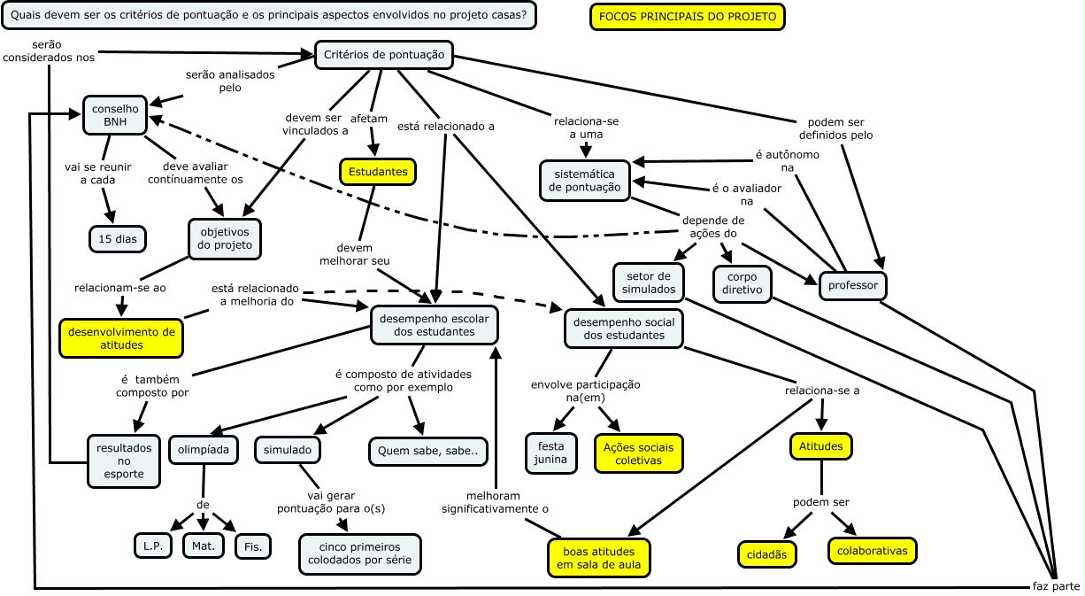 This Concept Map, created with IHMC CmapTools, has information related to: CríteriosII, sistemática de pontuação depende de ações do setor de simulados, conselho BNH deve avaliar contínuamente os objetivos do projeto, professor é autônomo na sistemática de pontuação, Critérios de pontuação devem ser vinculados a objetivos do projeto, desempenho escolar dos estudantes é composto de atividades como por exemplo Quem sabe, sabe.., sistemática de pontuação depende de ações do corpo diretivo, objetivos do projeto relacionam-se ao desenvolvimento de atitudes, sistemática de pontuação depende de ações do professor, sistemática de pontuação depende de ações do conselho BNH, conselho BNH vai se reunir a cada 15 dias, Critérios de pontuação está relacionado a desempenho escolar dos estudantes, Critérios de pontuação podem ser definidos pelo professor, desempenho social dos estudantes relaciona-se a Atitudes, Atitudes podem ser cidadãs, Critérios de pontuação serão analisados pelo conselho BNH, Critérios de pontuação está relacionado a desempenho social dos estudantes, olimpíada de Fis., setor de simulados faz parte conselho BNH, desempenho social dos estudantes relaciona-se a boas atitudes em sala de aula, desenvolvimento de atitudes está relacionado a melhoria do desempenho social dos estudantes