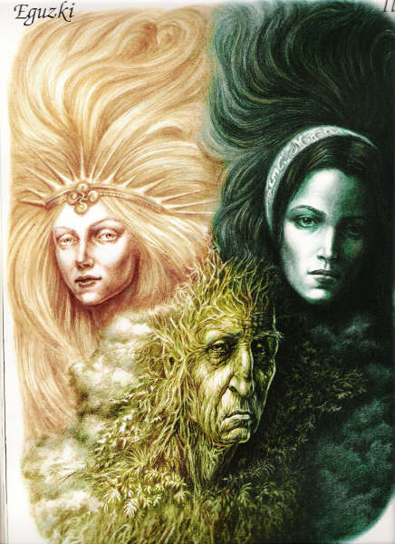 Anbotoko Mari.jpg Eguzki, Ilargi eta Amalur.jpg Mari eta Maju.jpg Mikelats, atarrabi eta deabrua.jpg
