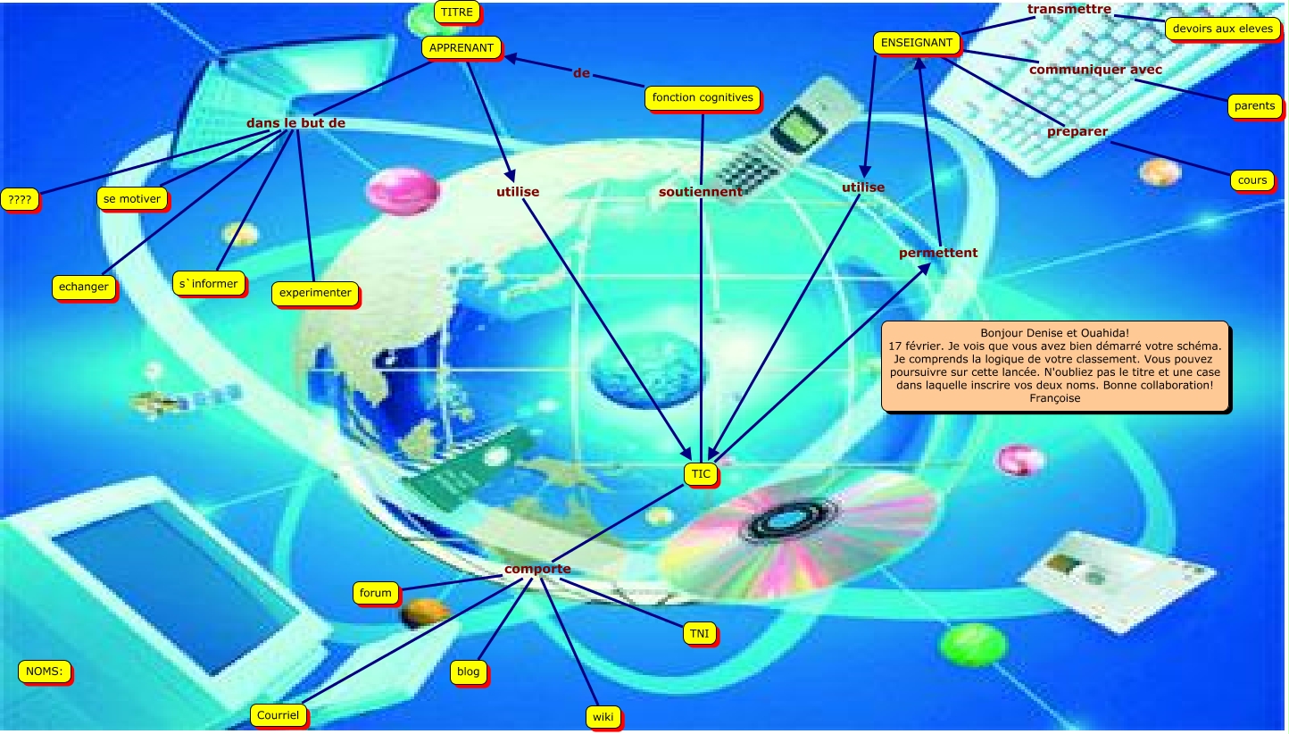 Cette carte de concepts créée avec IHMC CmapTools traite de: typologie, fonction cognitives de APPRENANT, TIC comporte Courriel, ENSEIGNANT preparer cours, APPRENANT dans le but de s`informer, APPRENANT dans le but de se motiver, TIC comporte TNI, fonction cognitives soutiennent TIC, TIC permettent ENSEIGNANT, TIC comporte wiki, ENSEIGNANT transmettre devoirs aux eleves, ENSEIGNANT communiquer avec parents, APPRENANT dans le but de experimenter, ENSEIGNANT utilise TIC, APPRENANT dans le but de ????, APPRENANT utilise TIC, APPRENANT dans le but de echanger, TIC comporte forum, TIC comporte blog