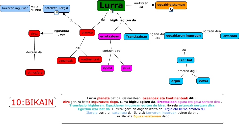 IHMC CmapTools-ekin sortu den kontzeptu-mapa honek honi buruzko informazioa du: Lur_ Planeta_Asier_Blanca, Lurra higitu egiten da errotazioan, Izar bat ematen digu beroa, Lurra aurkitzen da eguzki-sisteman, planeta inguratuta dago airez, planeta ditu kontinenteak, errotazioan sortzen dira eguna, Lurra higitu egiten da Translazioan, planeta ditu ozeanoak, airez deitzen da atmosfera, Lurra da planeta, satelitea-ilargia egiten du bira lurraren inguruan, Translazioan egiten du bira eguzkiaren inguruan, eguzkiaren inguruan da Izar bat, Izar bat ematen digu argia, eguzkiaren inguruan sortzen dira Urtaroak, errotazioan sortzen dira gaua, planeta du satelitea-ilargia