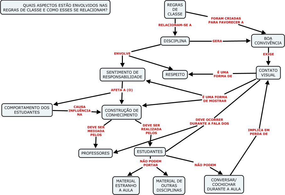 This Concept Map, created with IHMC CmapTools, has information related to: DisciplinaII, CONTATO VISUAL É UMA FORMA DE MOSTRAR CONSTRUÇÃO DE CONHECIMENTO, DISCIPLINA ENVOLVE RESPEITO, SENTIMENTO DE RESPONSABILIDADE AFETA A (O) COMPORTAMENTO DOS ESTUDANTES, ESTUDANTES NÃO PODEM CONVERSAR/ COCHICHAR DURANTE A AULA, DISCIPLINA GERA BOA CONVIVÊNCIA, ESTUDANTES NÃO PODEM PORTAR MATERIAL ESTRANHO A AULA, CONTATO VISUAL DEVE OCORRER DURANTE A FALA DOS PROFESSORES, SENTIMENTO DE RESPONSABILIDADE AFETA A (O) CONSTRUÇÃO DE CONHECIMENTO, BOA CONVIVÊNCIA EXIGE CONTATO VISUAL, CONVERSAR/ COCHICHAR DURANTE A AULA IMPLICA EM PERDA DE CONTATO VISUAL, CONTATO VISUAL DEVE OCORRER DURANTE A FALA DOS ESTUDANTES, CONTATO VISUAL É UMA FORMA DE MOSTRAR SENTIMENTO DE RESPONSABILIDADE, DISCIPLINA ENVOLVE SENTIMENTO DE RESPONSABILIDADE, REGRAS DE CLASSE FORAM CRIADAS PARA FAVORECER A BOA CONVIVÊNCIA, COMPORTAMENTO DOS ESTUDANTES CAUSA INFLUÊNCIA NA CONSTRUÇÃO DE CONHECIMENTO, CONSTRUÇÃO DE CONHECIMENTO DEVE SER MEDIADA PELOS PROFESSORES, CONTATO VISUAL É UMA FORMA DE RESPEITO, CONSTRUÇÃO DE CONHECIMENTO DEVE SER REALIZADA PELOS ESTUDANTES, REGRAS DE CLASSE RELACIONAM-SE A DISCIPLINA, ESTUDANTES NÃO PODEM PORTAR MATERIAL DE OUTRAS DISCIPLINAS