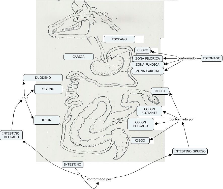 Este Cmap, tiene información relacionada con: TRACTO DIGESTIVO EQUINOS, INTESTINO conformado por INTESTINO GRUESO, INTESTINO GRUESO conformado por CIEGO, INTESTINO GRUESO conformado por RECTO, INTESTINO conformado por INTESTINO DELGADO, INTESTINO DELGADO ???? YEYUNO, INTESTINO DELGADO ???? DUODENO, ESTOMAGO conformado ZONA FUNDICA, INTESTINO GRUESO conformado por COLON PLEGADO, INTESTINO DELGADO ???? ILEON, INTESTINO GRUESO conformado por COLON FLOTANTE, ESTOMAGO conformado PILORO, ESTOMAGO conformado ZONA PILORICA, ESTOMAGO conformado ZONA CARDIAL