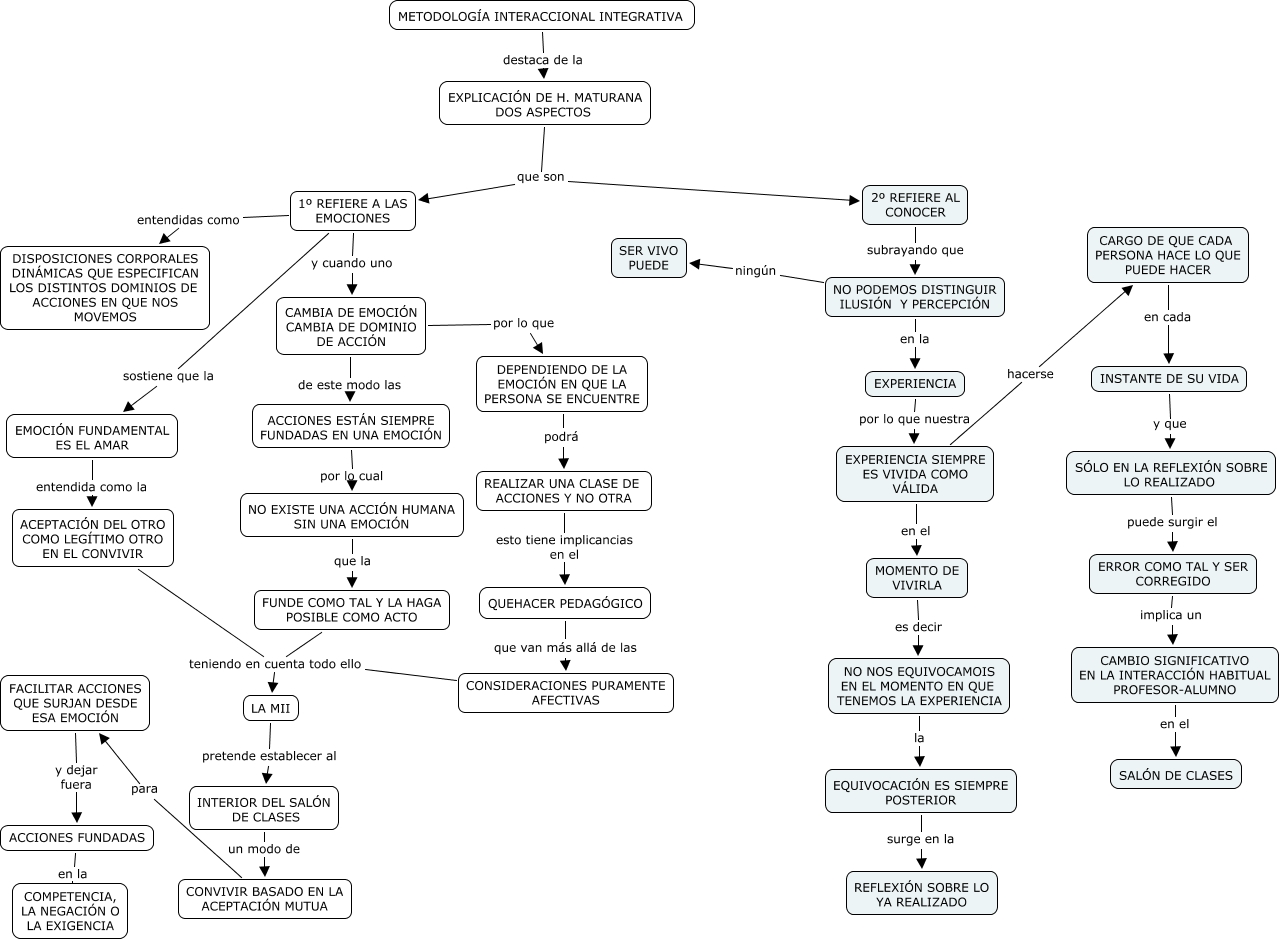 Este Cmap, tiene información relacionada con: MII y aspectos matrizticos, LA MII pretende establecer al INTERIOR DEL SALÓN DE CLASES, EMOCIÓN FUNDAMENTAL ES EL AMAR entendida como la ACEPTACIÓN DEL OTRO COMO LEGÍTIMO OTRO EN EL CONVIVIR, QUEHACER PEDAGÓGICO que van más allá de las CONSIDERACIONES PURAMENTE AFECTIVAS, CAMBIA DE EMOCIÓN CAMBIA DE DOMINIO DE ACCIÓN por lo que DEPENDIENDO DE LA EMOCIÓN EN QUE LA PERSONA SE ENCUENTRE, EXPERIENCIA SIEMPRE ES VIVIDA COMO VÁLIDA en el MOMENTO DE VIVIRLA, 1º REFIERE A LAS EMOCIONES y cuando uno CAMBIA DE EMOCIÓN CAMBIA DE DOMINIO DE ACCIÓN, FUNDE COMO TAL Y LA HAGA POSIBLE COMO ACTO teniendo en cuenta todo ello LA MII, 2º REFIERE AL CONOCER subrayando que NO PODEMOS DISTINGUIR ILUSIÓN Y PERCEPCIÓN, EXPLICACIÓN DE H. MATURANA DOS ASPECTOS que son 2º REFIERE AL CONOCER, INSTANTE DE SU VIDA y que SÓLO EN LA REFLEXIÓN SOBRE LO REALIZADO, NO PODEMOS DISTINGUIR ILUSIÓN Y PERCEPCIÓN en la EXPERIENCIA, NO EXISTE UNA ACCIÓN HUMANA SIN UNA EMOCIÓN que la FUNDE COMO TAL Y LA HAGA POSIBLE COMO ACTO, MOMENTO DE VIVIRLA es decir NO NOS EQUIVOCAMOIS EN EL MOMENTO EN QUE TENEMOS LA EXPERIENCIA, CAMBIA DE EMOCIÓN CAMBIA DE DOMINIO DE ACCIÓN de este modo las ACCIONES ESTÁN SIEMPRE FUNDADAS EN UNA EMOCIÓN, ERROR COMO TAL Y SER CORREGIDO implica un CAMBIO SIGNIFICATIVO EN LA INTERACCIÓN HABITUAL PROFESOR-ALUMNO, EXPERIENCIA por lo que nuestra EXPERIENCIA SIEMPRE ES VIVIDA COMO VÁLIDA, DEPENDIENDO DE LA EMOCIÓN EN QUE LA PERSONA SE ENCUENTRE podrá REALIZAR UNA CLASE DE ACCIONES Y NO OTRA, ACCIONES ESTÁN SIEMPRE FUNDADAS EN UNA EMOCIÓN por lo cual NO EXISTE UNA ACCIÓN HUMANA SIN UNA EMOCIÓN, ACCIONES FUNDADAS en la COMPETENCIA, LA NEGACIÓN O LA EXIGENCIA, 1º REFIERE A LAS EMOCIONES sostiene que la EMOCIÓN FUNDAMENTAL ES EL AMAR