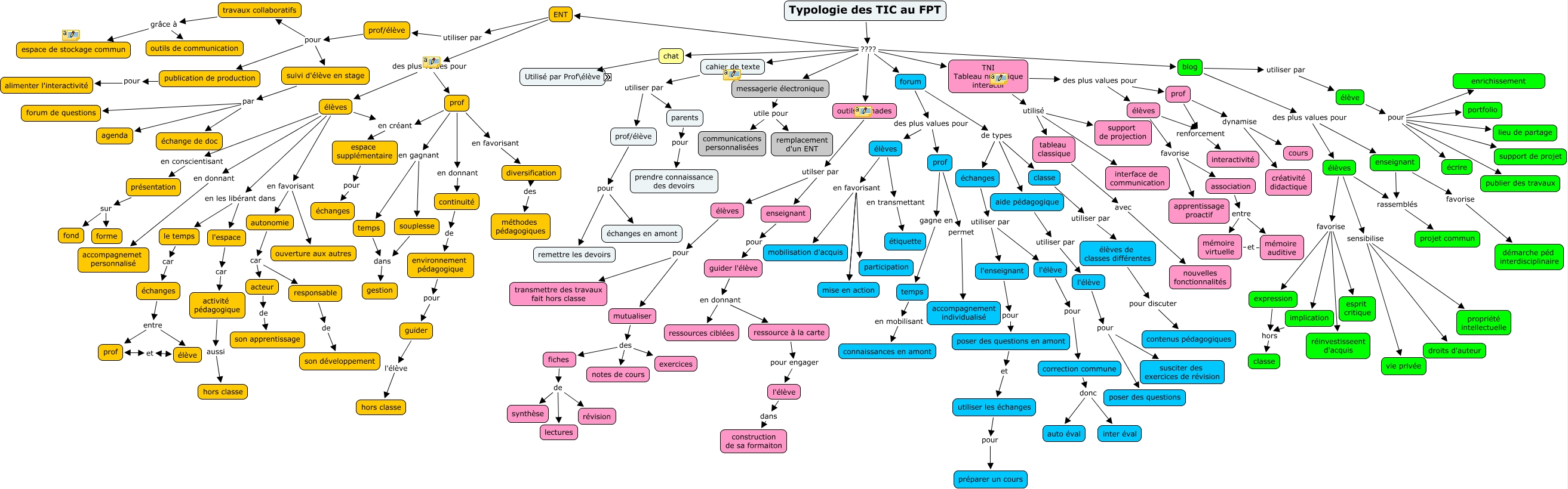 Cette carte de concepts créée avec IHMC CmapTools traite de: carte typo educnet, élèves en favorisant mobilisation d'acquis, prof/élève pour remettre les devoirs, prof/élève pour échanges en amont, élèves en créant espace supplémentaire, forum des plus values pour prof, ENT des plus values pour élèves, Typologie des TIC au FPT ???? messagerie électronique, l'espace car activité pédagogique, acteur de son apprentissage, outils nomades utilser par élèves, TNI Tableau numérique interactif utilisé tableau classique, échanges utiliser par l'élève, chat utiliser par prof/élève, échanges entre élève, l'élève pour susciter des exercices de révision, espace supplémentaire pour échanges, prof en donnant continuité, fiches de révision, suivi d'élève en stage par agenda, élèves en favorisant autonomie